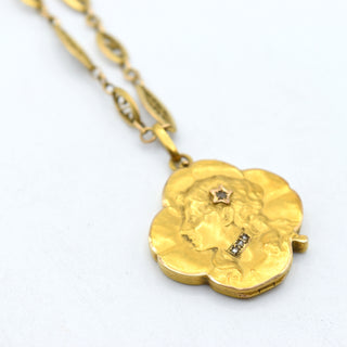 Halsketting en hanger (fotohouder) in 18 kt geelgoud bezet met diamantscherfjes (plexi, gedeukt) - 12 gr bruto (42.5 cm)