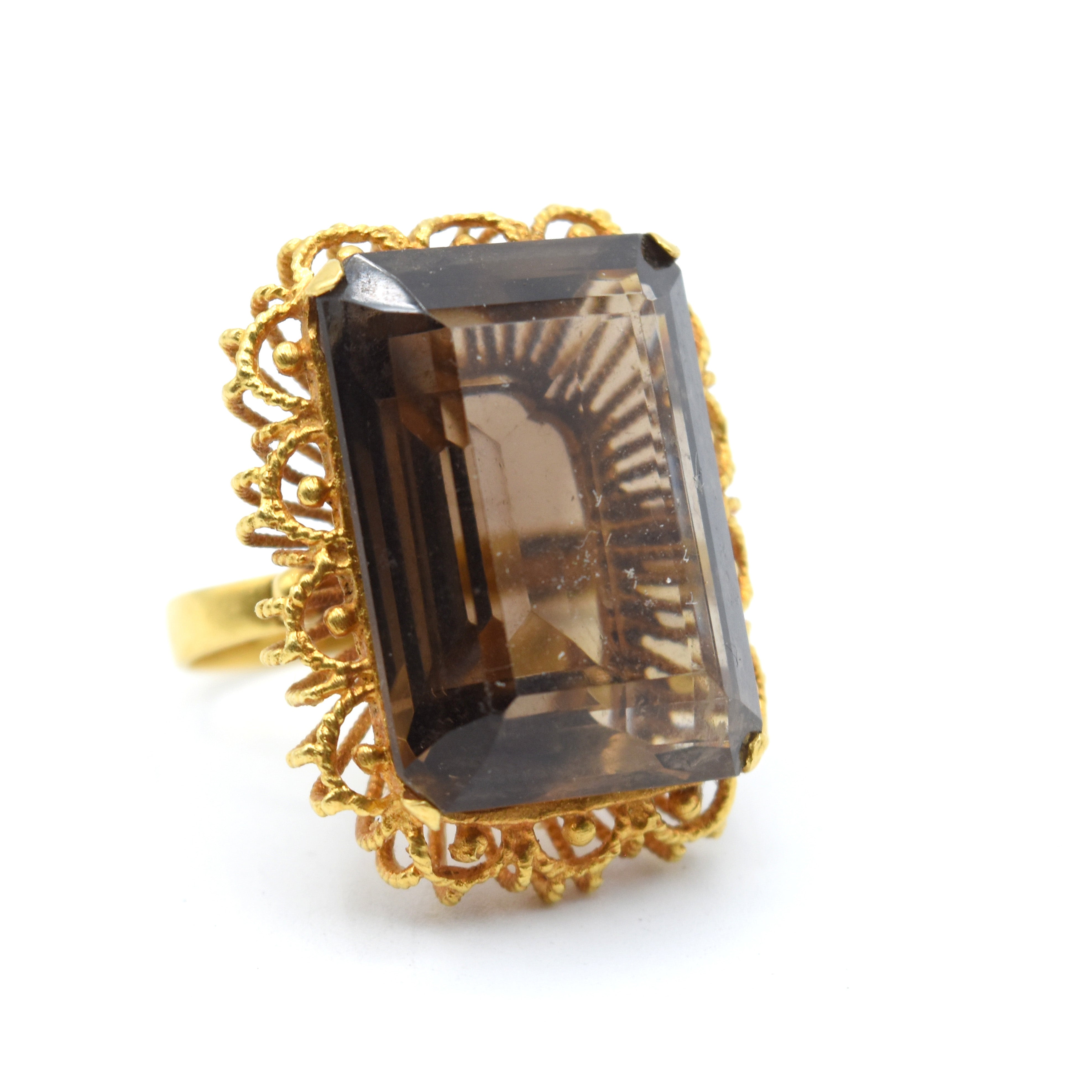 Ring in 18 kt geelgoud bezet met 1 gerookte quartz (beschadigd, gedeukt) - 16.3 gr bruto (Maat: 52.5)