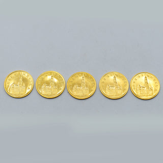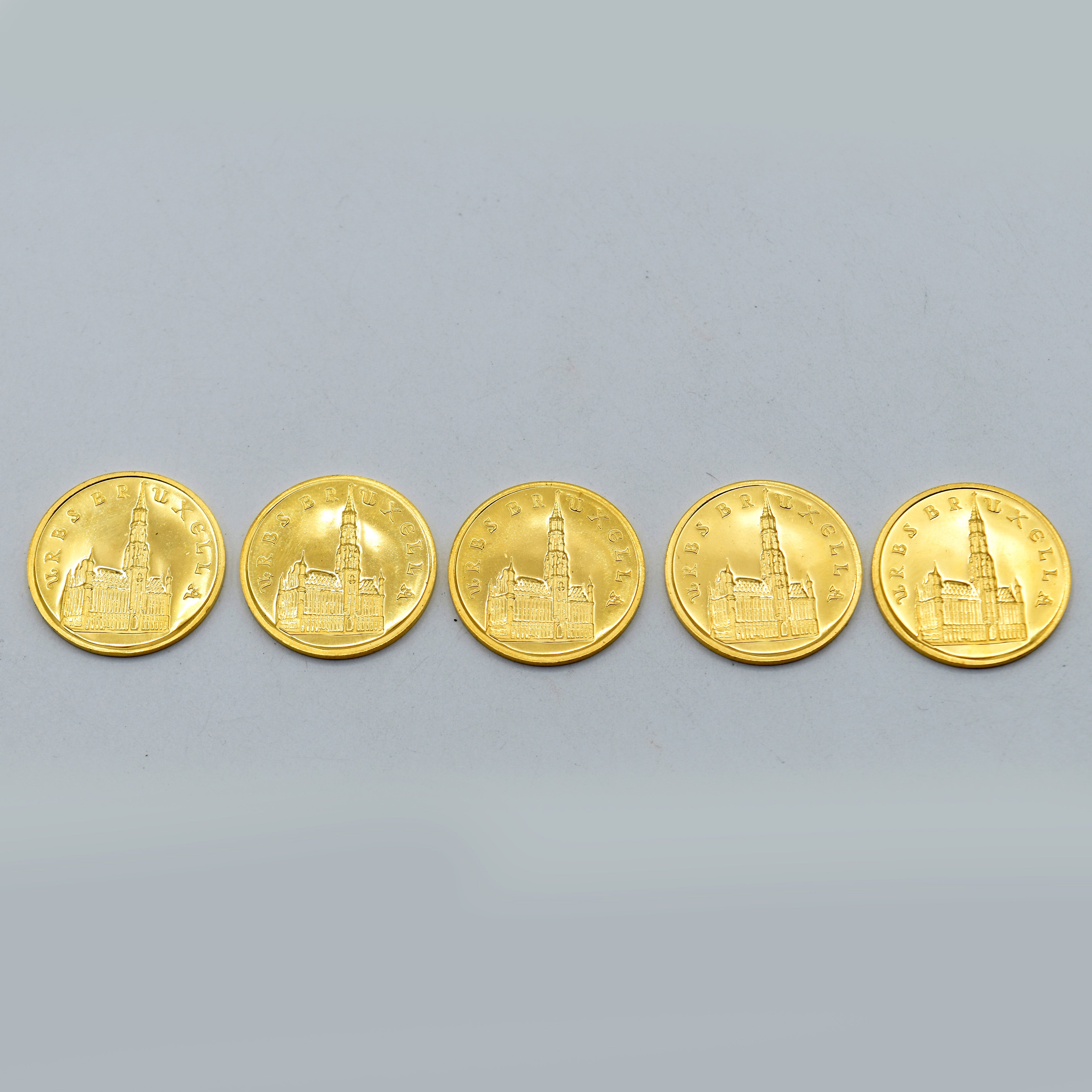 5 herdenkingsmunten in geelgoud 900/1000 (belgisch-1000 ans de Bruxelles 979-1979) - 32.2 gr + doosjes