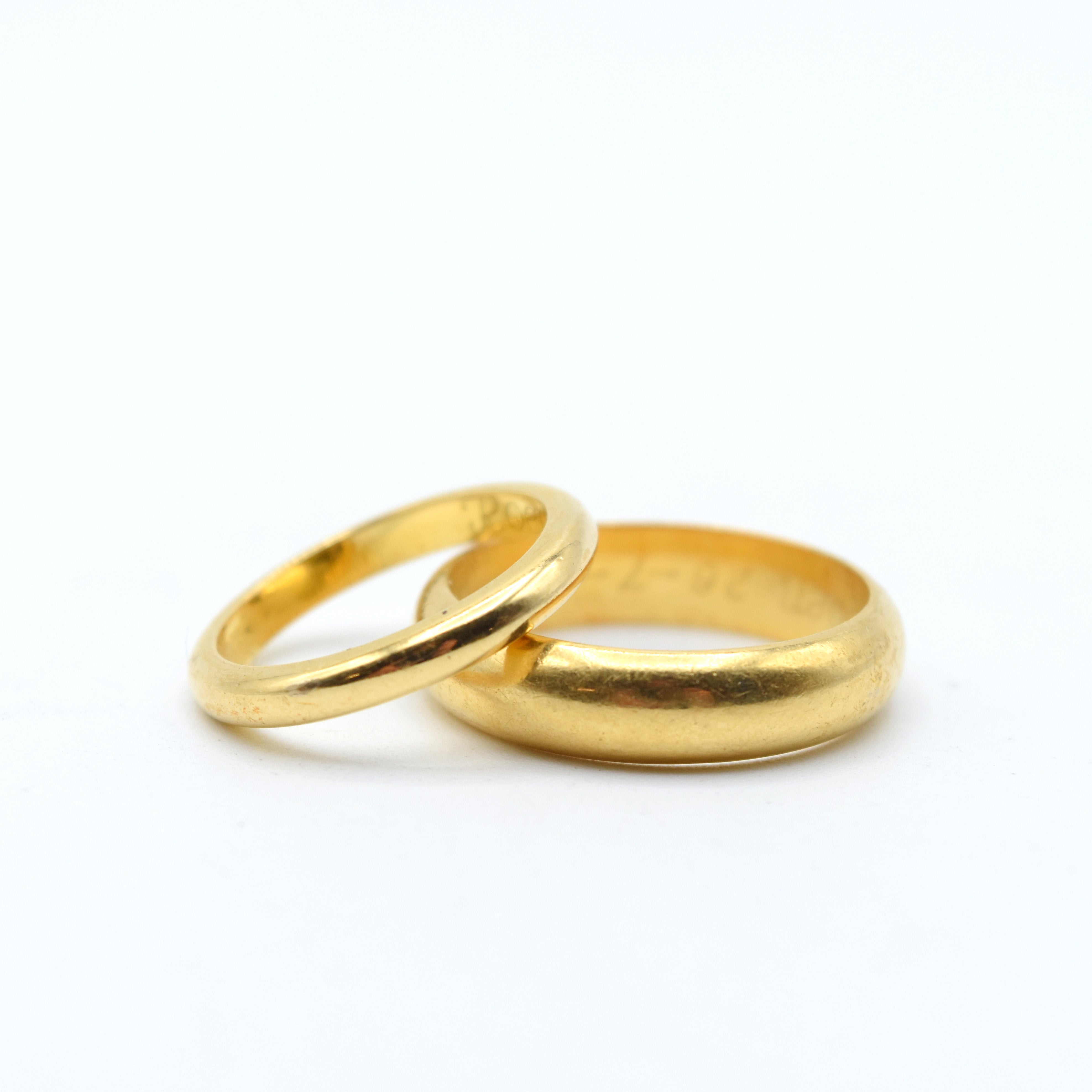 2 trouwringen in geelgoud 18 kt (gepersonaliseerd) - 9.5 gr (Maten: 56 & 47)