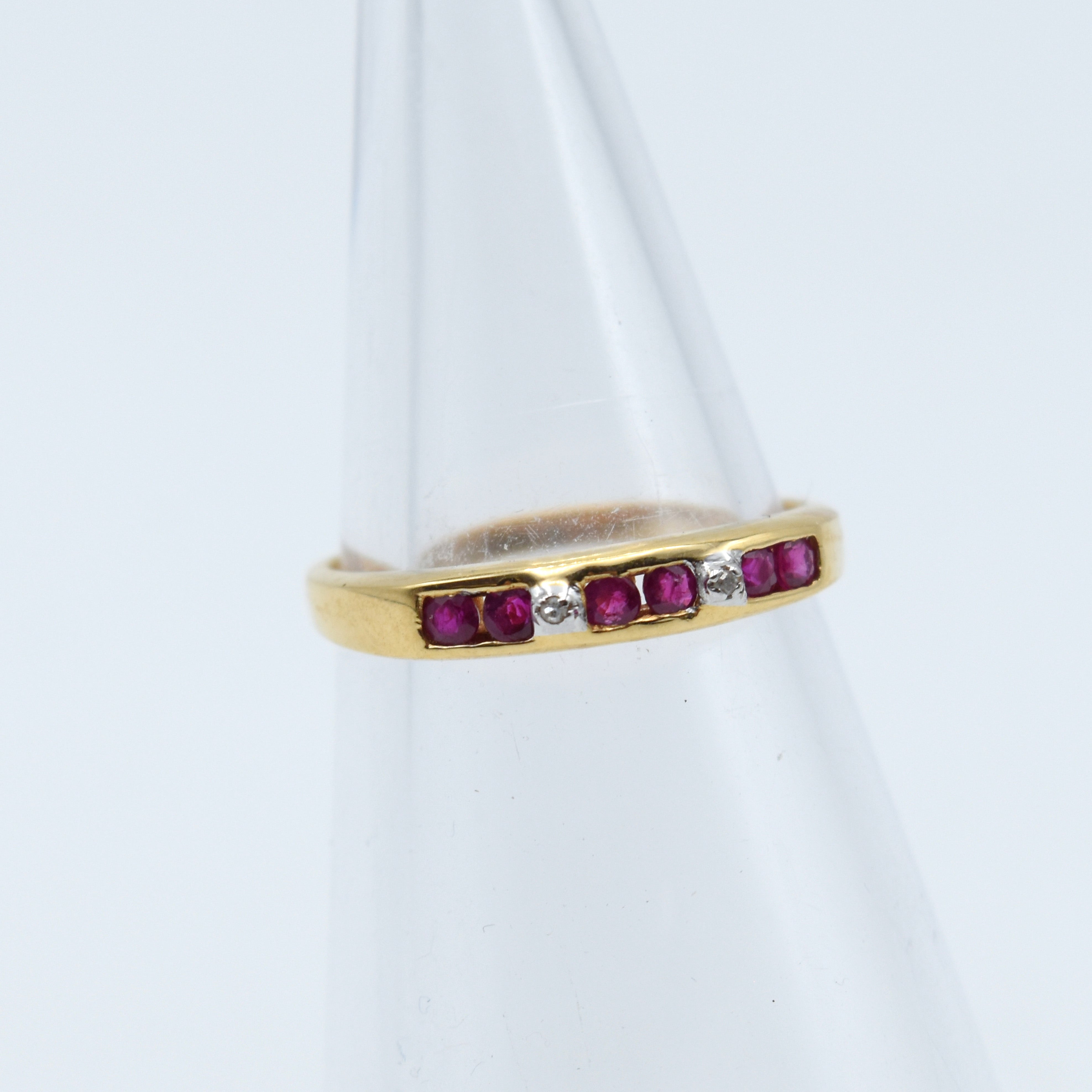 Ring in 18 kt geelgoud bezet met 2 diamanten 8/8 slijpsel +/- 0.02 kt (kleurstenen) - 2.2 gr bruto (Maat: 54)