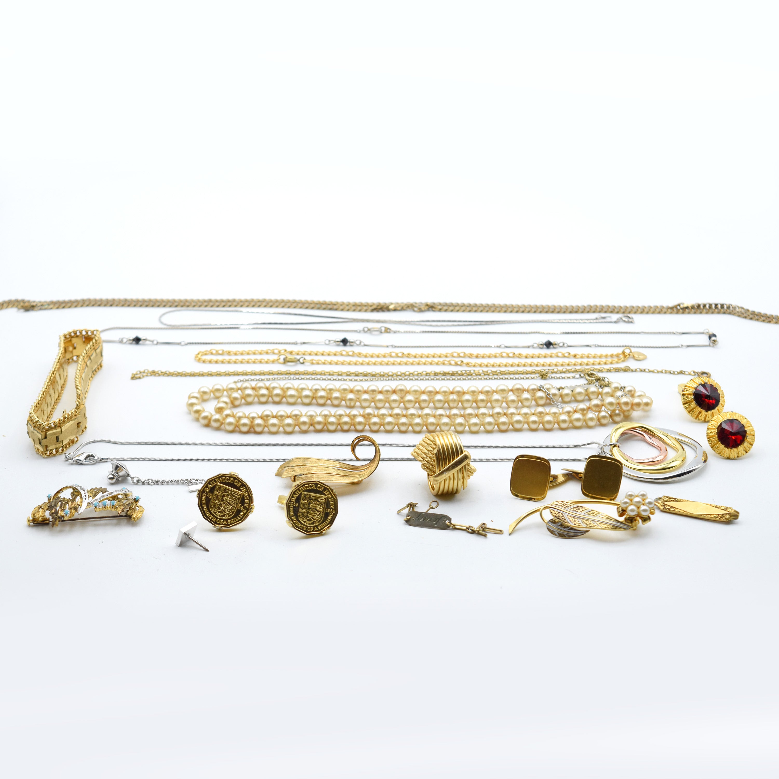 Lot van fantasiejuwelen (stukken ontbreken, gegraveerd, beschadigd, gedeukt, geöxideerd)