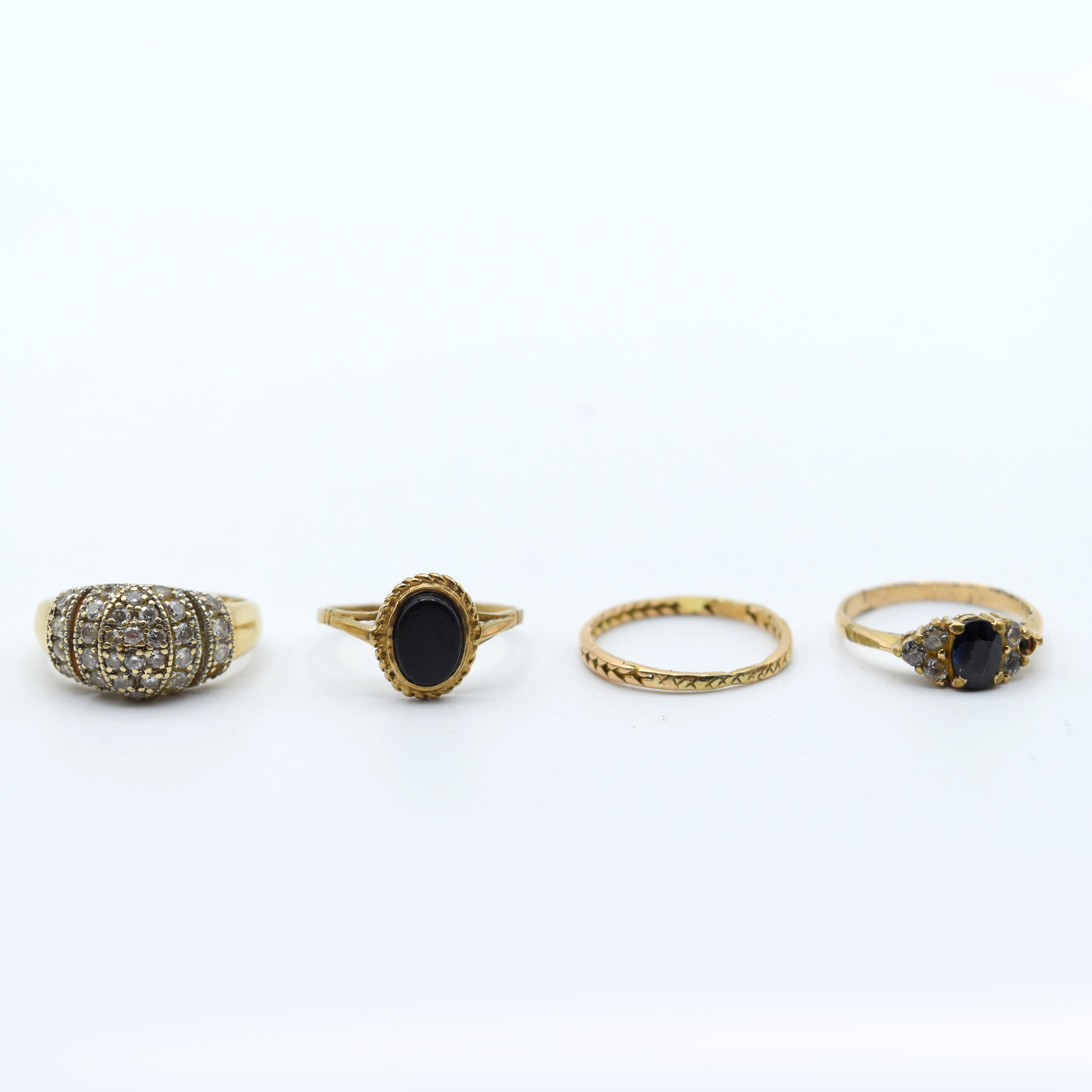 3 ringen in 14 kt geel- en witgoud (valse stenen, kleurstenen, steen ontbreekt, beschadigd, gedeukt) - 5.2 gr bruto (Maten: 51, 50 & 49.5) Ring in pleetgoud (valse stenen, kleursteen, steen ontbreekt, beschadigd,gedeukt (Maat: 50)