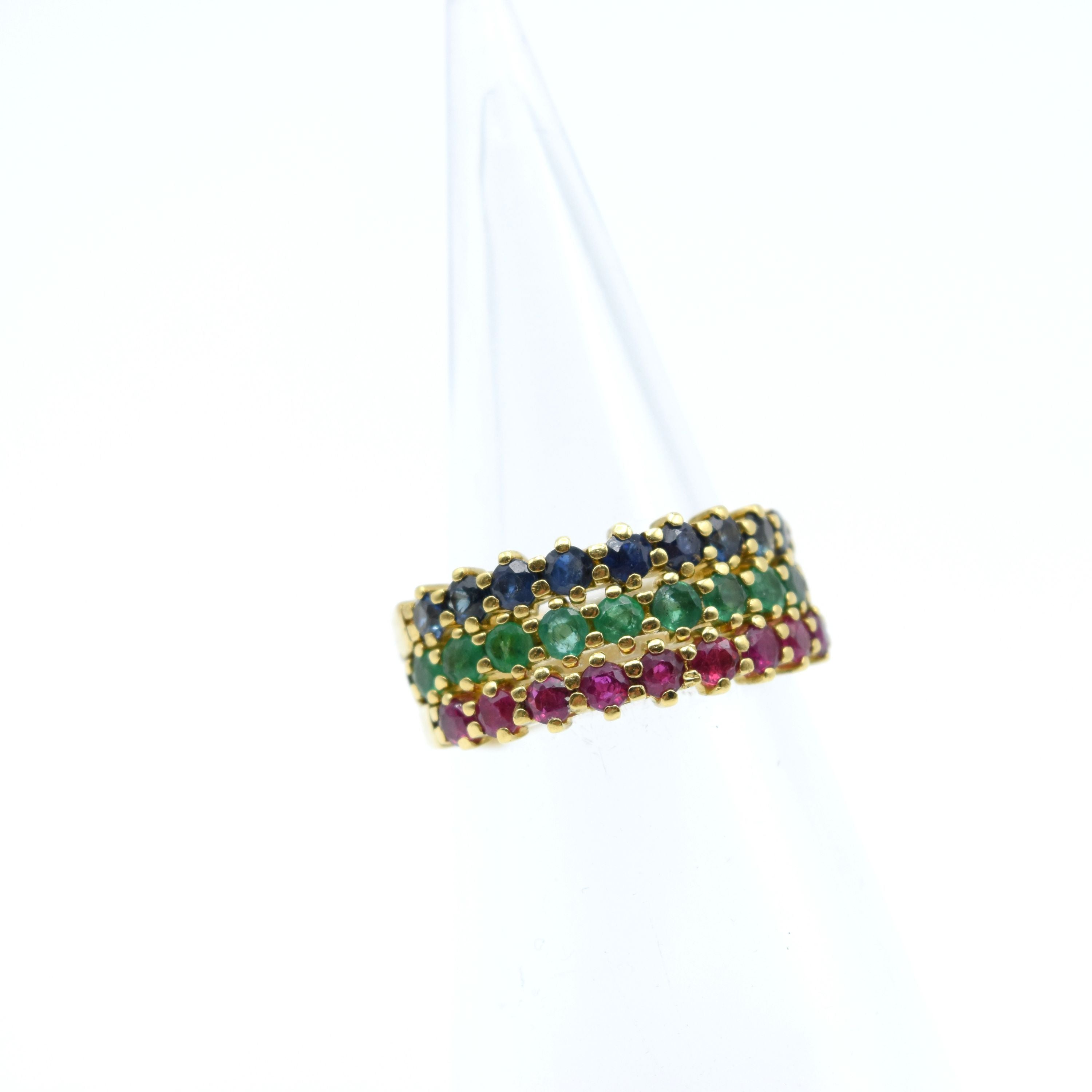 3 ringen in 18 kt geelgoud (saffieren, robijnen, smaragden) - 8 gr bruto (maten: 57, 57.5, & 58)