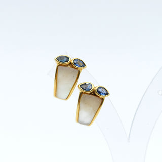 2 oorringen in 18 kt geelgoud (4 saffieren, 2 parelmoeren) - 6.3 gr bruto