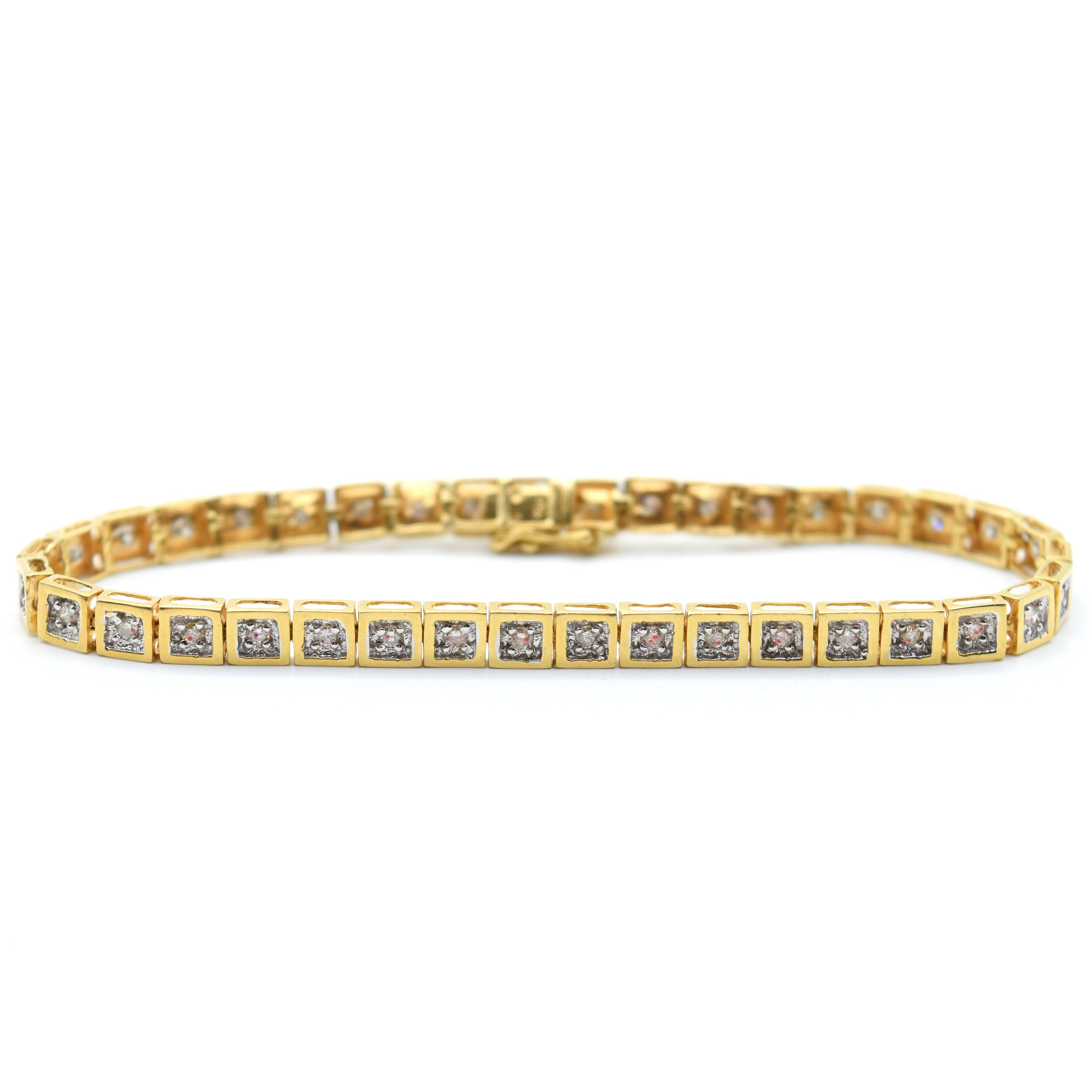 Armband in 18 kt geel- en witgoud bezet met 38 briljanten +/- 0.76 kt (gedeukt) - 10.3 gr (18 cm)