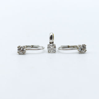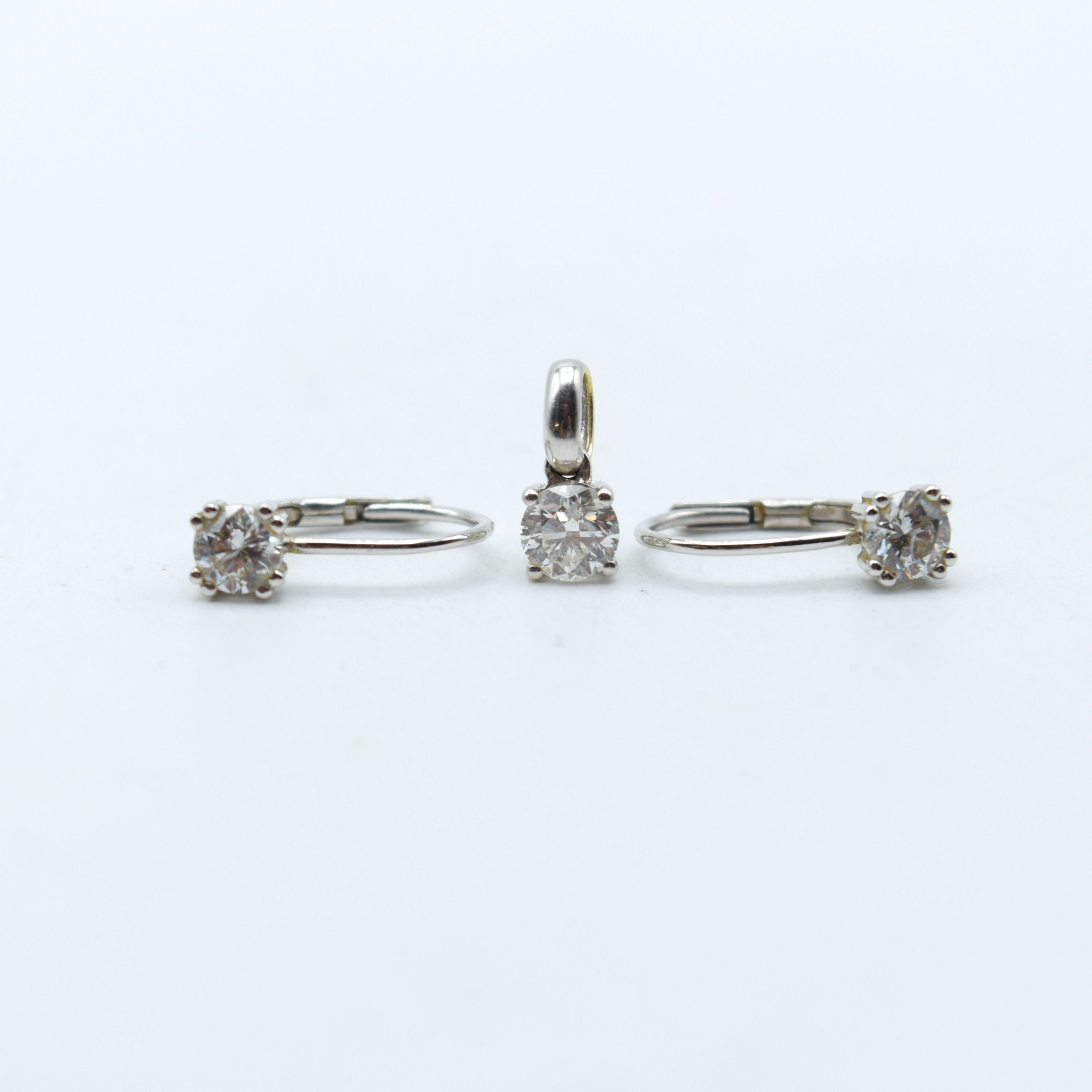 Hanger en 2 oorringen in 18 kt geel- en witgoud bezet met 1 briljant +/- 0.25 kt (valse stenen) - 1.9 gr bruto