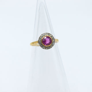 Ring in 18 kt geel- en witgoud bezet met diamantscherfjes (kleursteen, stenen beschadigd) - 1.8 gr bruto (Maat: 48)