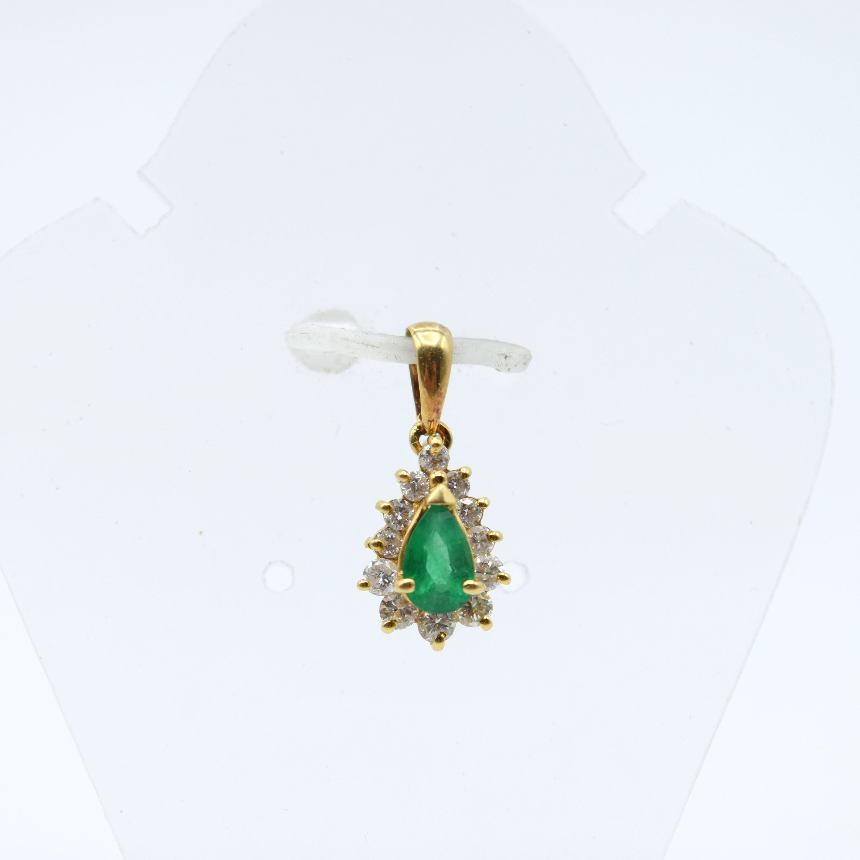 Hanger in 18 kt geelgoud bezet met 12 briljanten +/- 0.24 kt (smaragd) - 1.1 gr bruto