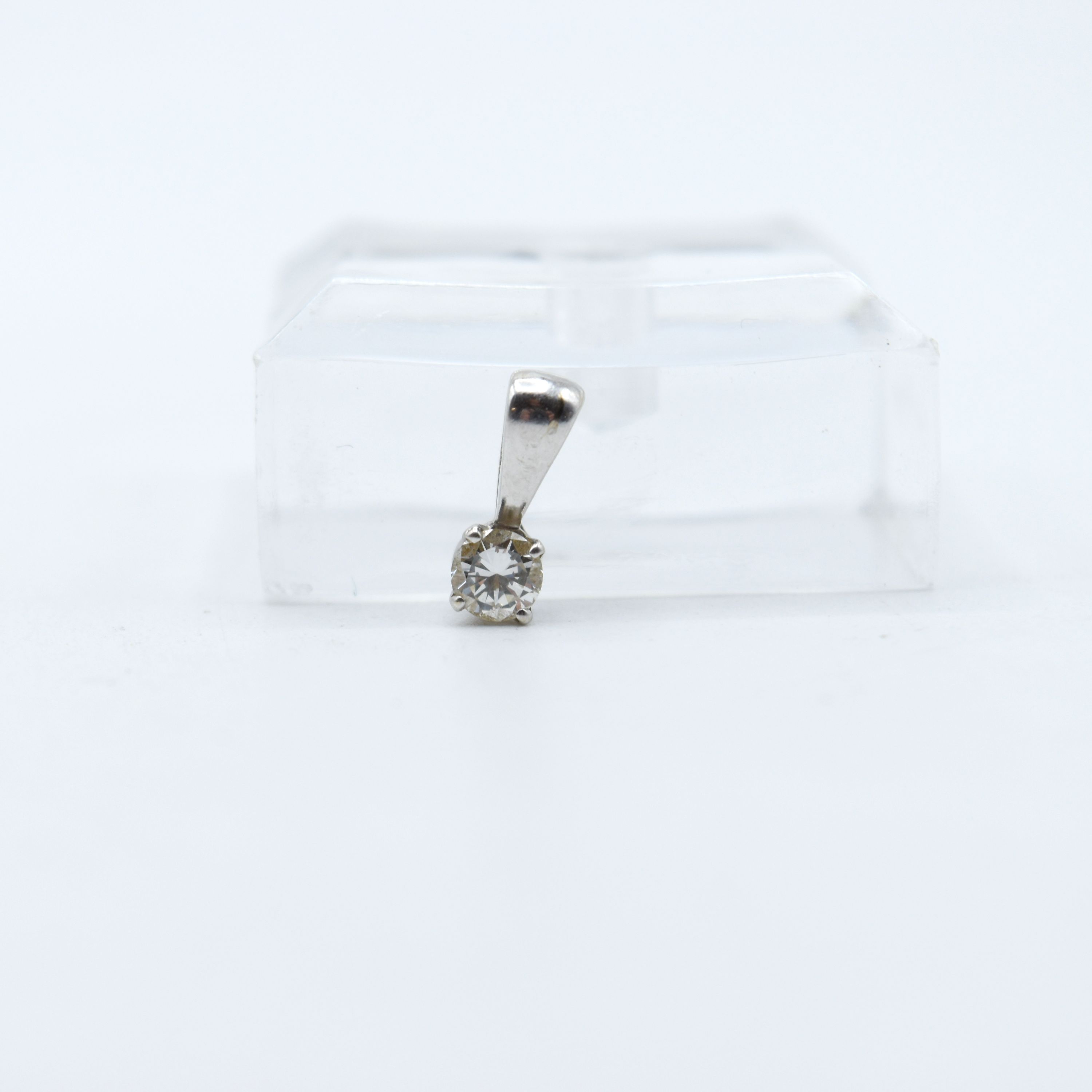 Hanger in 18 kt witgoud bezet met 1 briljant +/- 0.20 kt (gedeukt) - 0.7 gr