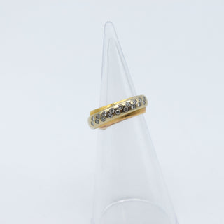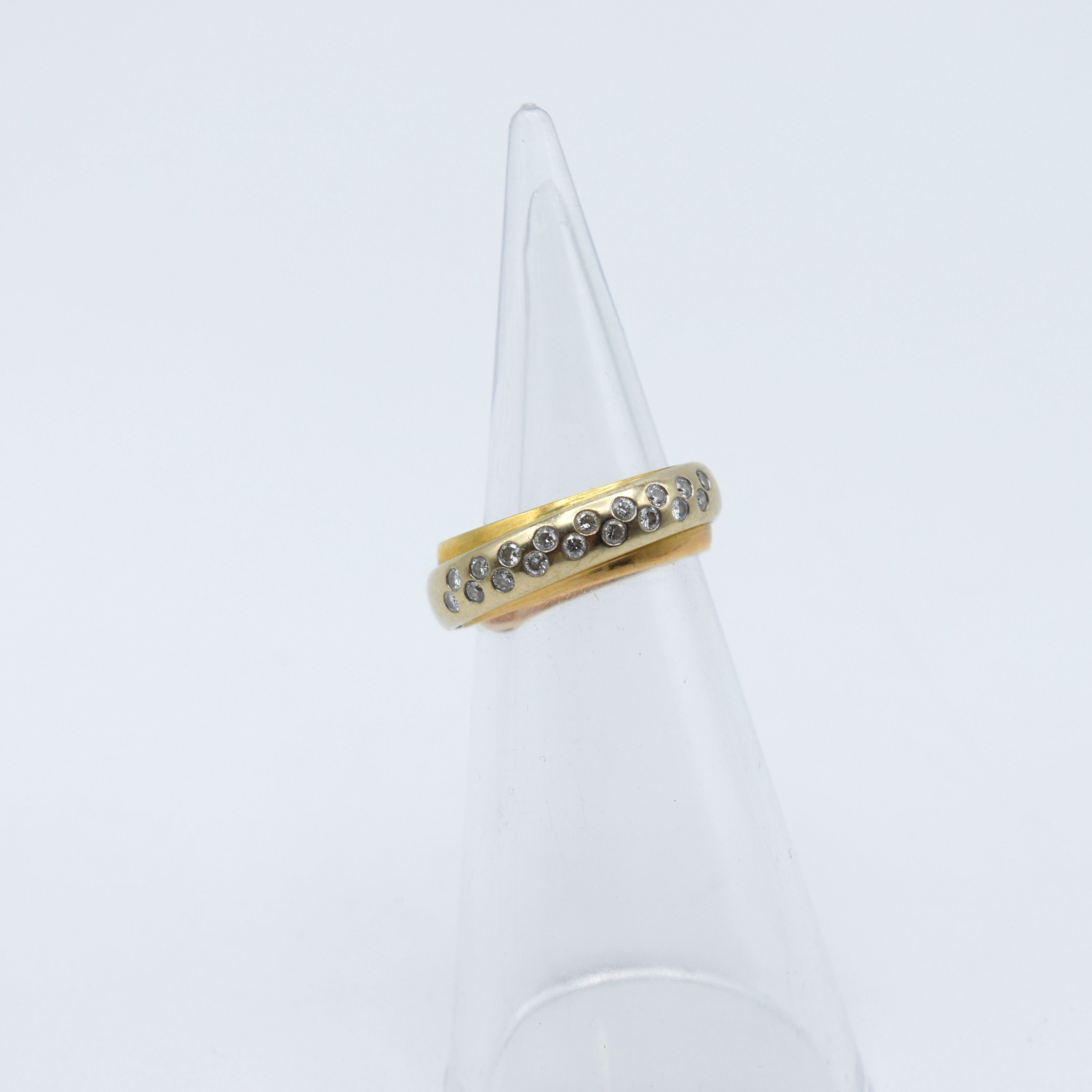 Ring in 18 kt 3-kleurengoud bezet met 18 briljanten +/- 0.40 kt (genummerd 8539750, gedeukt) - 8.2 gr (Maat: 54)