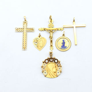 3 hangers en 3 kruizen in 18 kt geelgoud (gepersonaliseerd, email) - 29.8 g