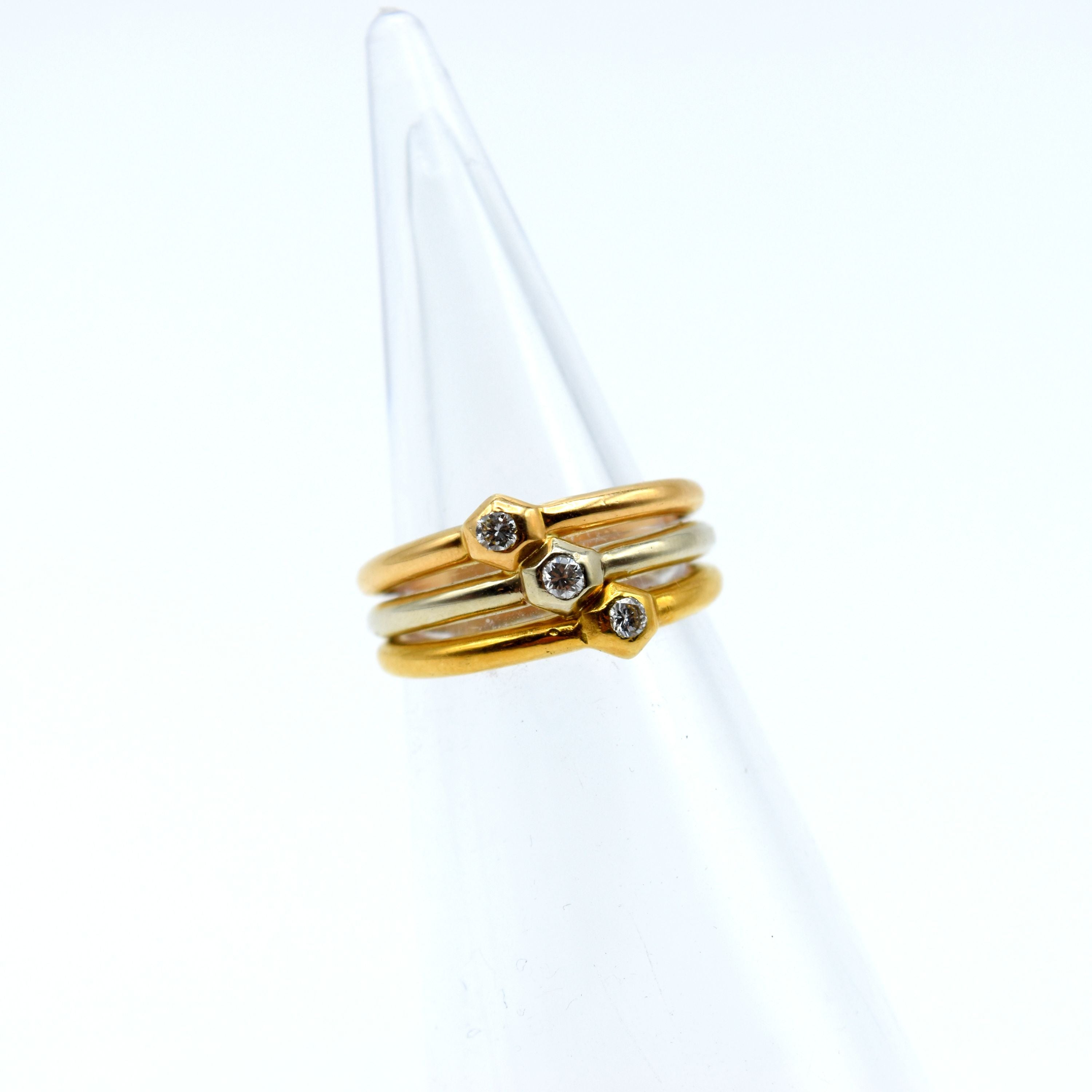 Ring in 18 kt 3-kleurengoud bezet met 3 briljanten +/- 0.15 kt - 5.2 g (Maat: 50.5)