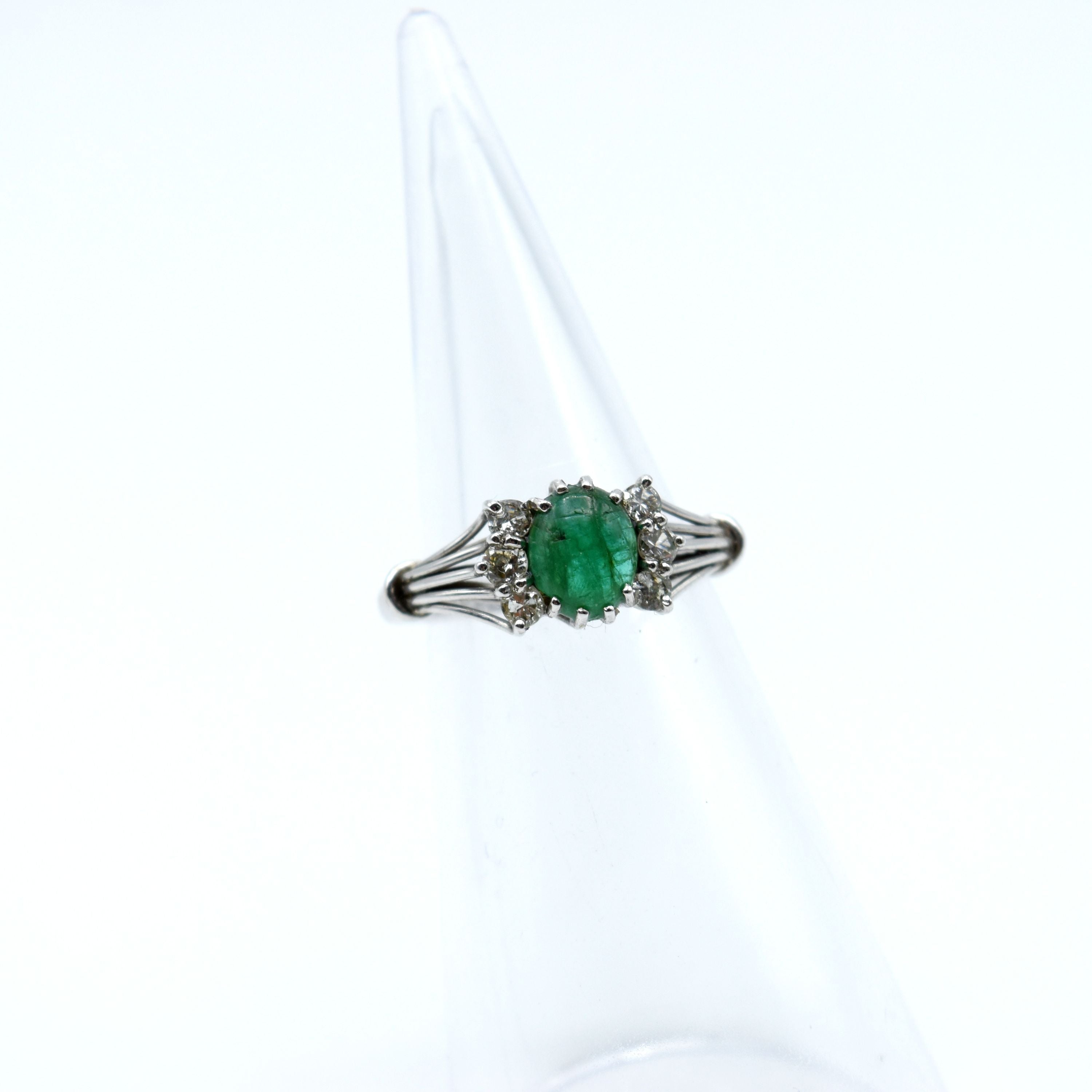 Ring in 18 kt witgoud bezet met 6 briljanten +/- 0.26 kt (kleursteen, beschadigd) - 4.4 g bruto (Maat: 56)