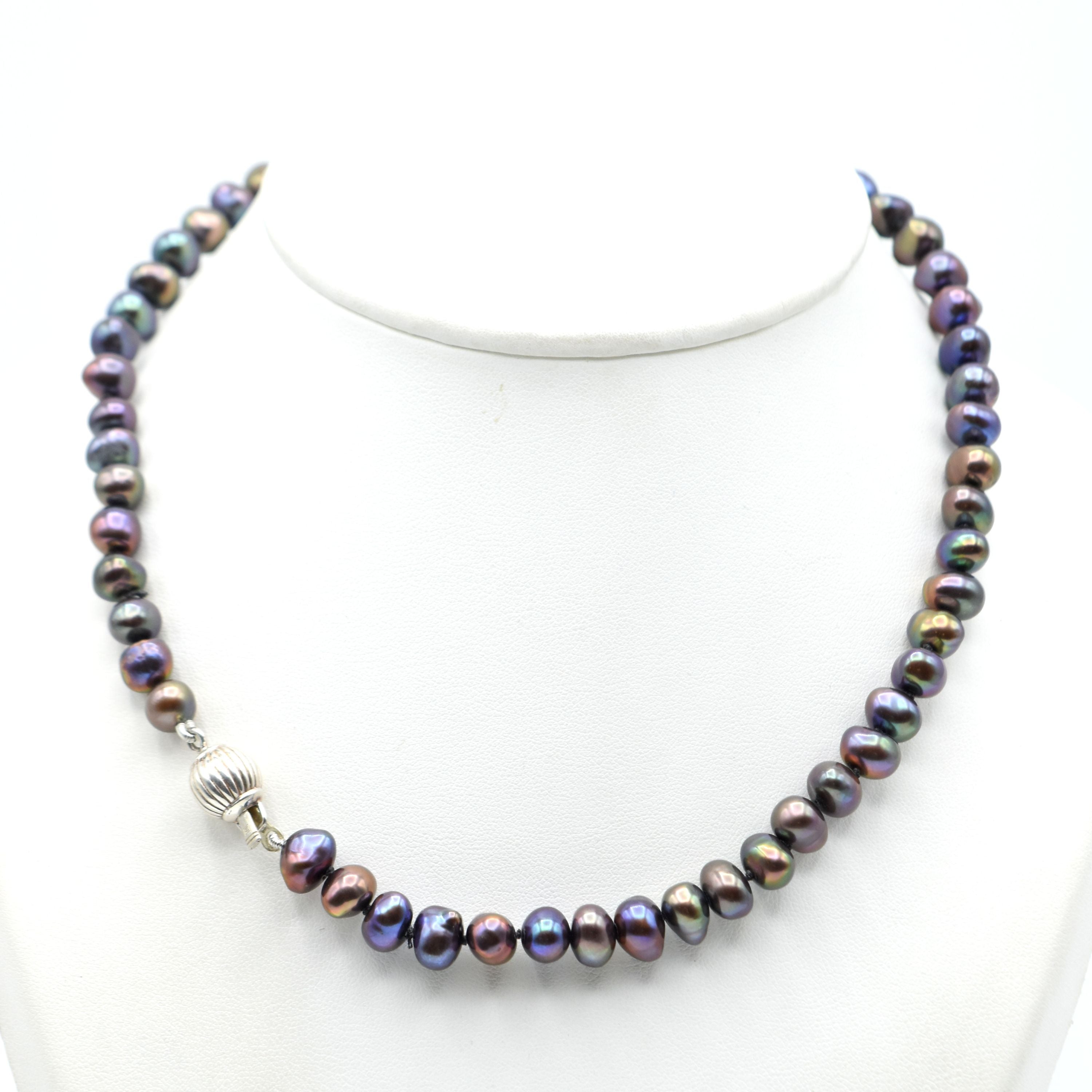Halssnoer van parels (+/- 5 mm) met sluiting in zilver (45 cm)