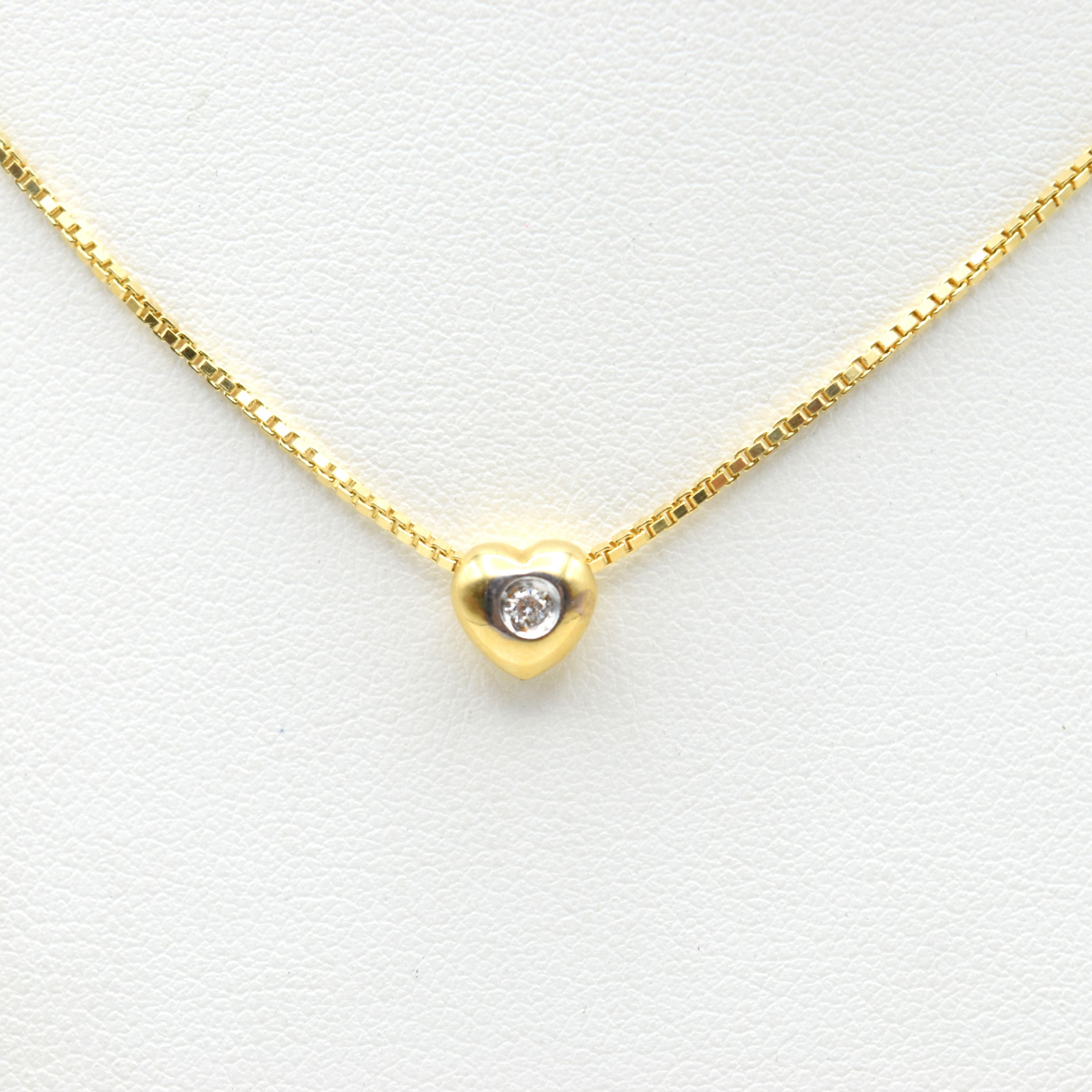 Halsketting met vastgehechte hanger in 18 kt geelgoud bezet met 1 briljant +/- 0.03 kt - 5 g (41 cm)