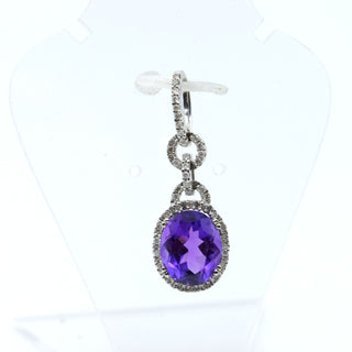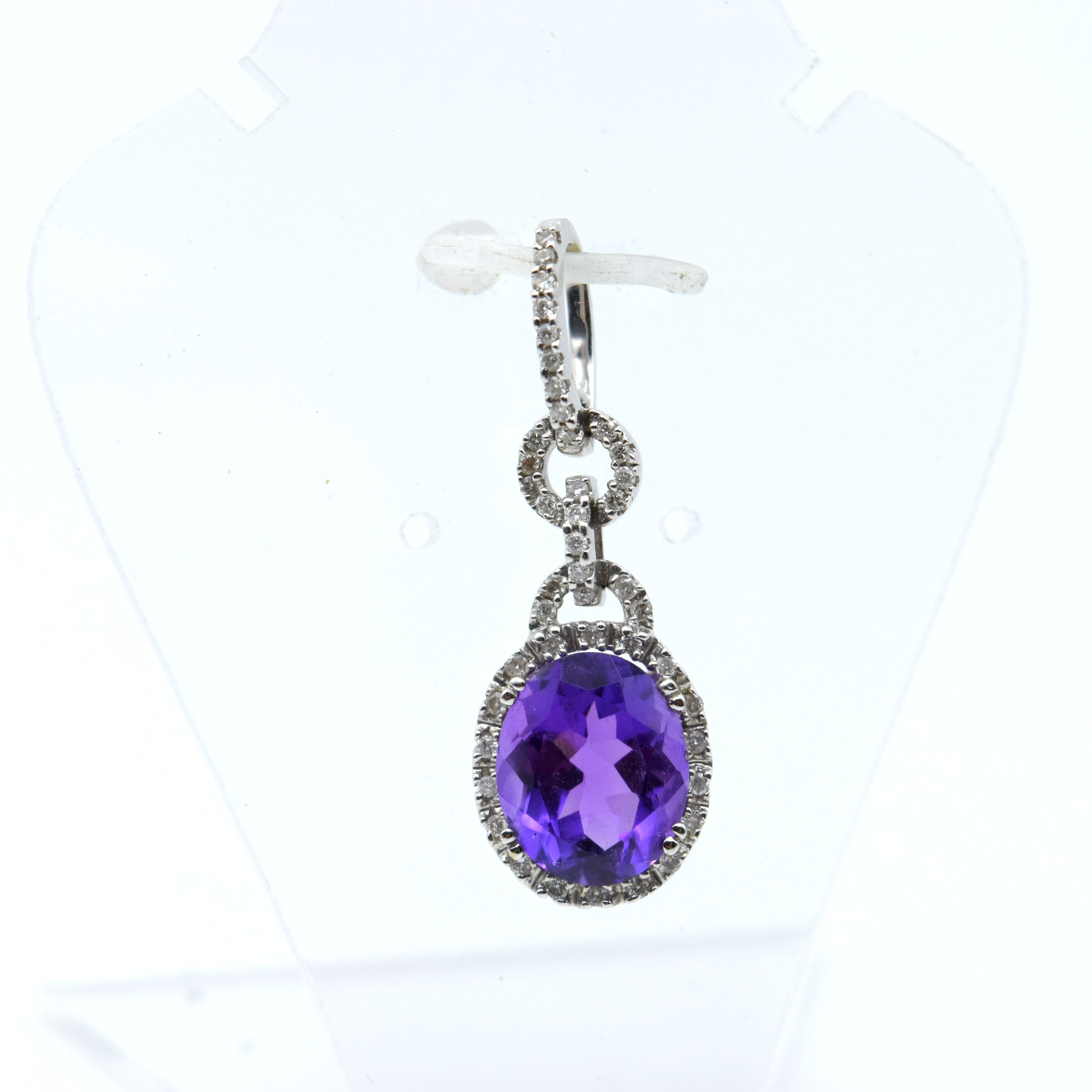 Hanger in 18 kt witgoud bezet met 44 briljanten +/- 0.44 kt en 1 amethist (stenen licht beschadigd) - 3.4 g bruto