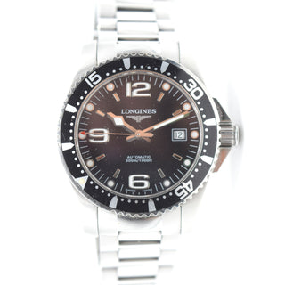 Herenpolshorloge in staal LONGINES Hydro Conquest automatisch (uurwerk nr L3.642.4 34002213, gekrast) (22 cm) + waarborgskaartje + papieren + doos beschadigd