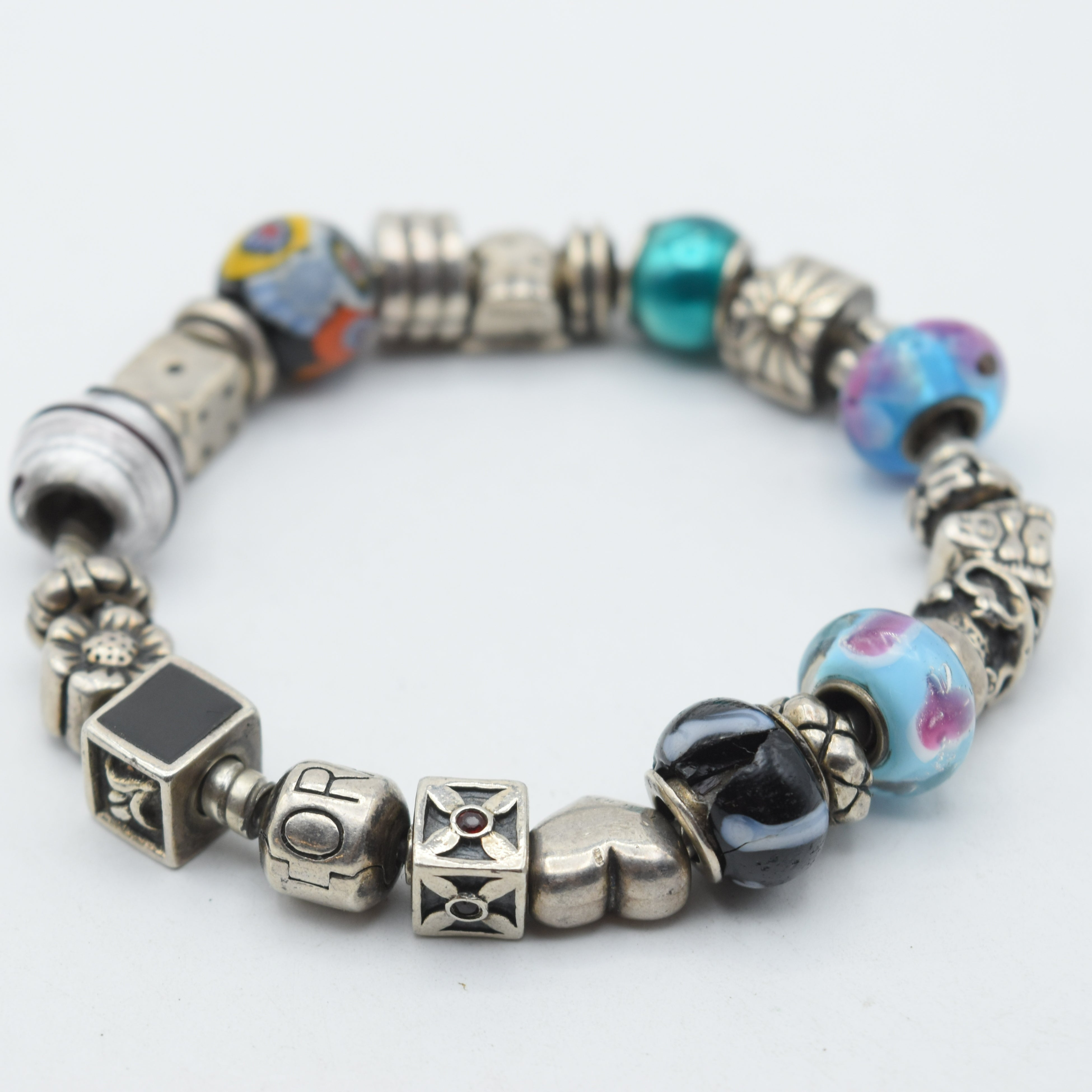Armband met vastgehechte hangers in zilver (kleurstenen, email, hars, beschadigd, gedeukt) - 26.2 g bruto (20 cm)