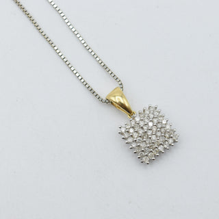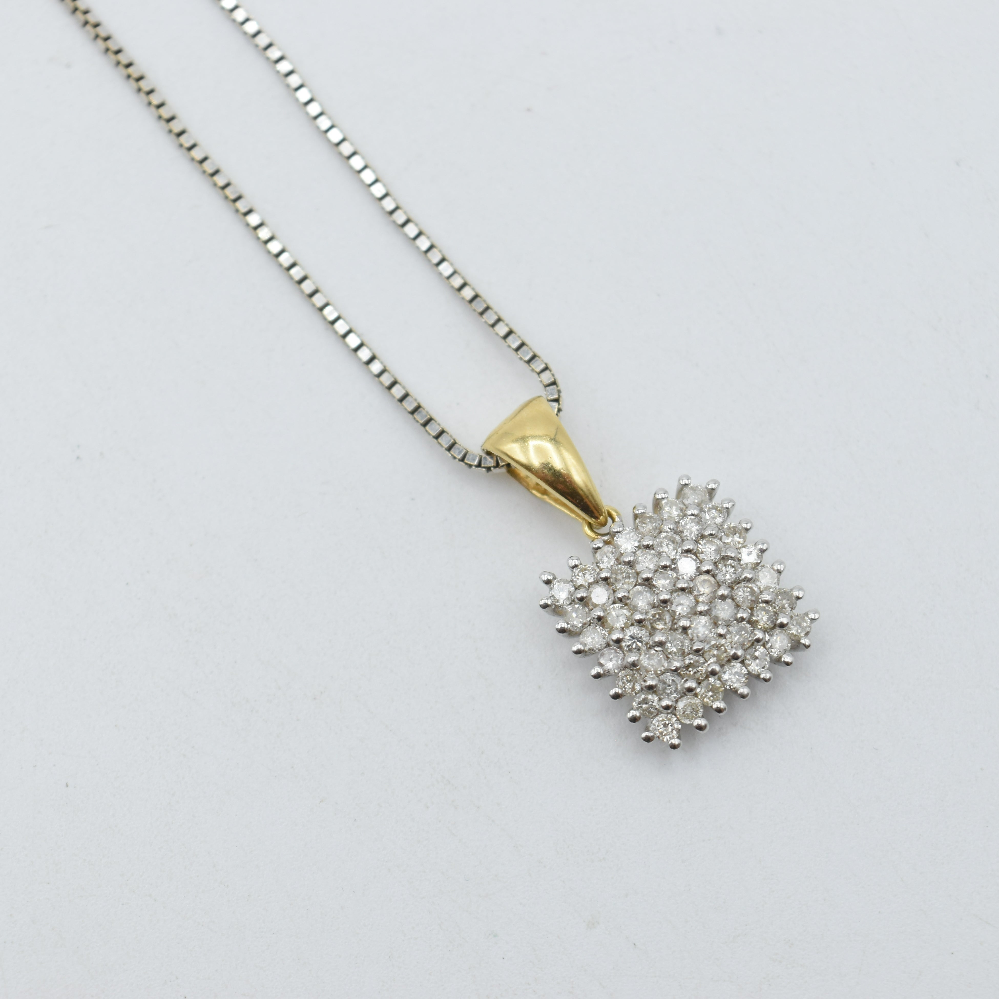 Halsketting en hanger in 18 kt geel- en witgoud bezet met 49 briljanten +/- 1 kt (stenen beschadigd) - 7.7 g (40 cm)