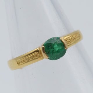Ring in 18 kt geelgoud bezet met 1 smaragd (steen beschadigd) - 1.6 g bruto (Maat: 54)