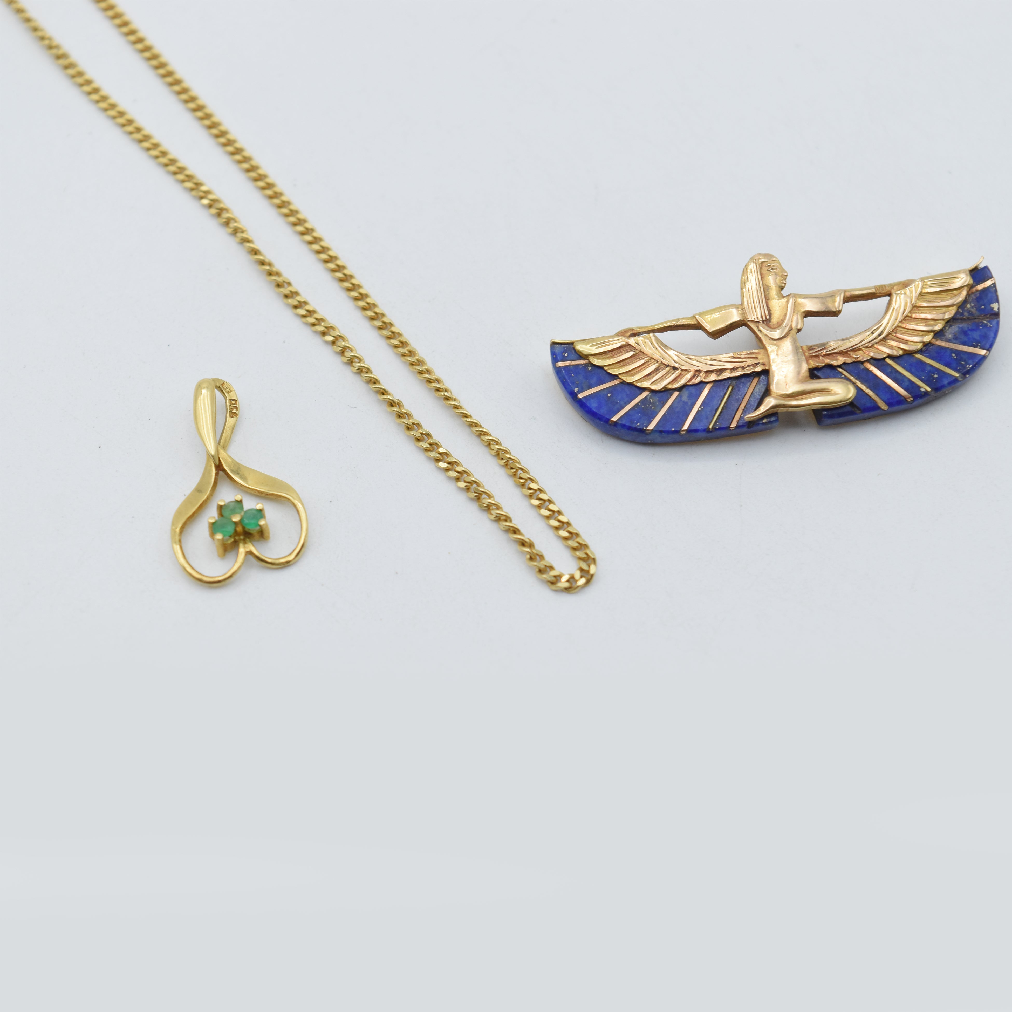 Halsketting en 2 hangers in 18 kt geelgoud bezet met lapis lazuli (kleurstenen) - 17.5 g bruto (60 cm)