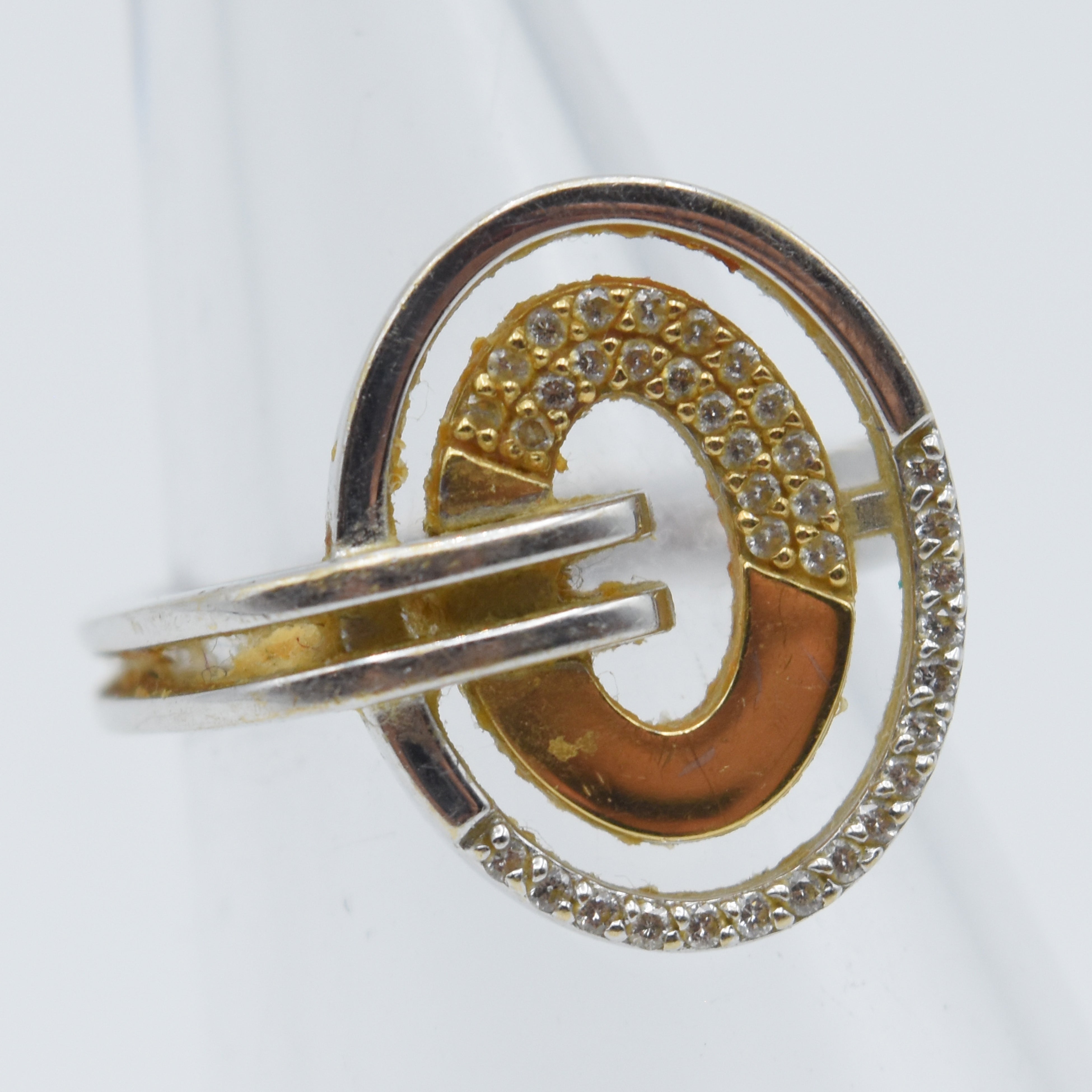Ring in 18 kt geel- en witgoud bezet met 36 briljanten +/- 0.36 kt - 6.6 g (Maat: 52)
