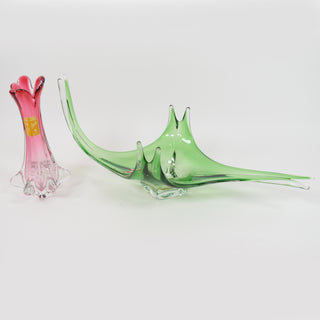 Vaas in tweekleurig kristal MURANO Chambord F.III Toso (H: 29 cm, Diam: 14 cm) Schaal in tweekleurig kristal MURANO (lijmresten) (58 x 27 x 25 cm)