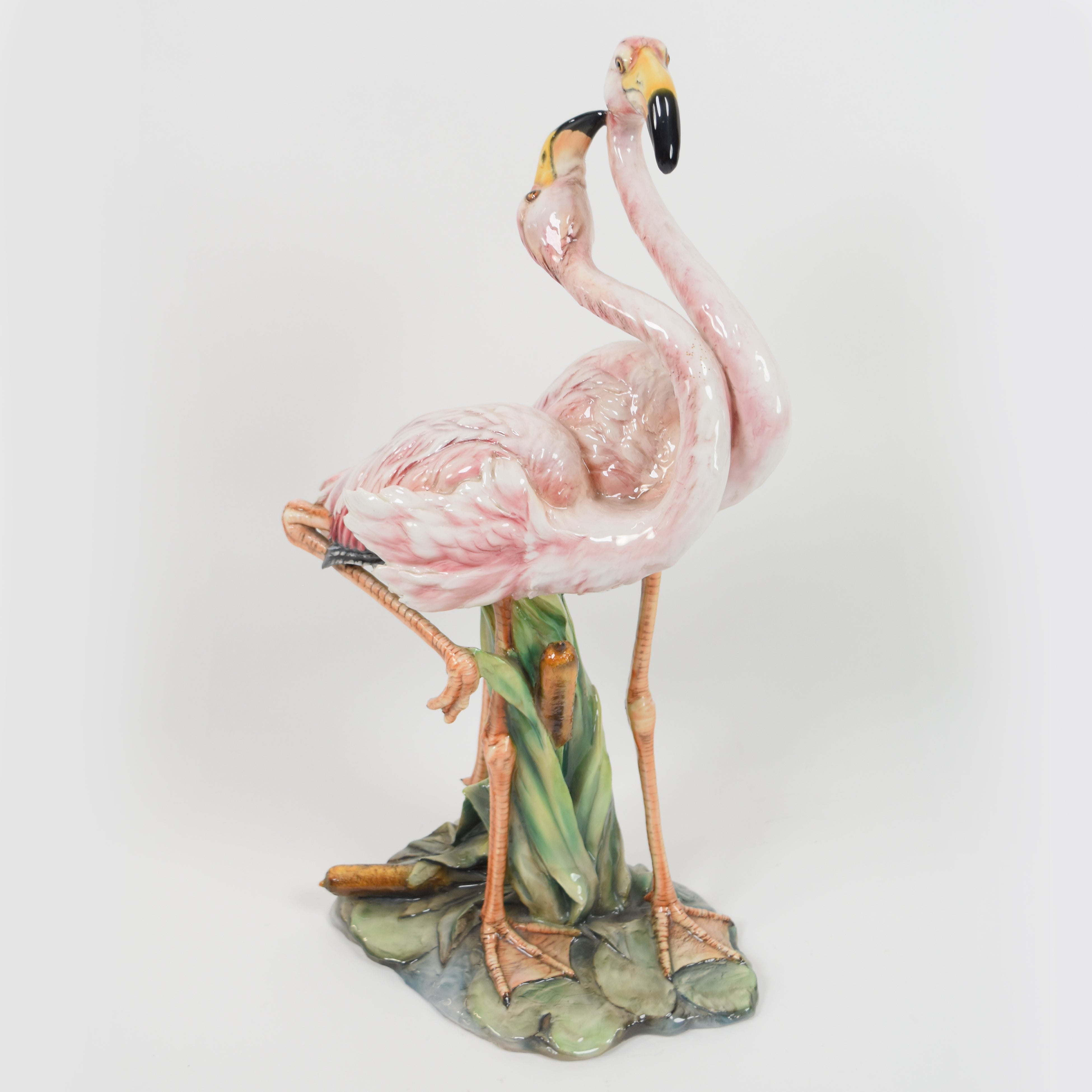 Koppel roze flamingo's in keramiek getekend G. TAY toegekend aan Giuseppe TAGLIAROL (H: 59 cm)
