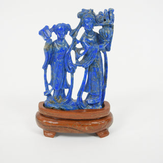 Oosters beeld in lapis lazuli en zijn houten sokkel (10.5 x 7 x 3 cm)