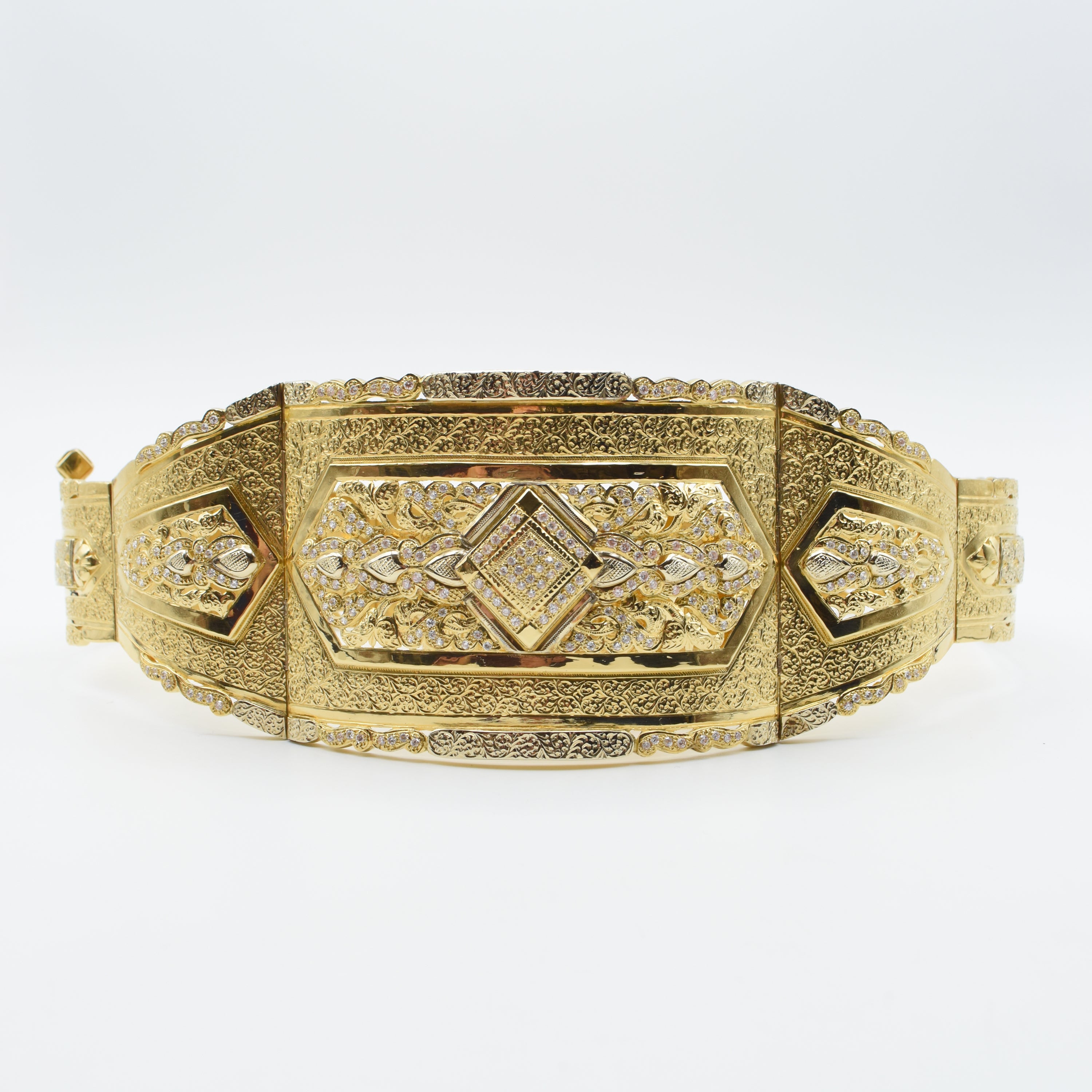 Ceintuur met 12+2 elementen in 18 kt geelgoud (valse stenen) 393.4 g bruto (75 cm) + hoes
