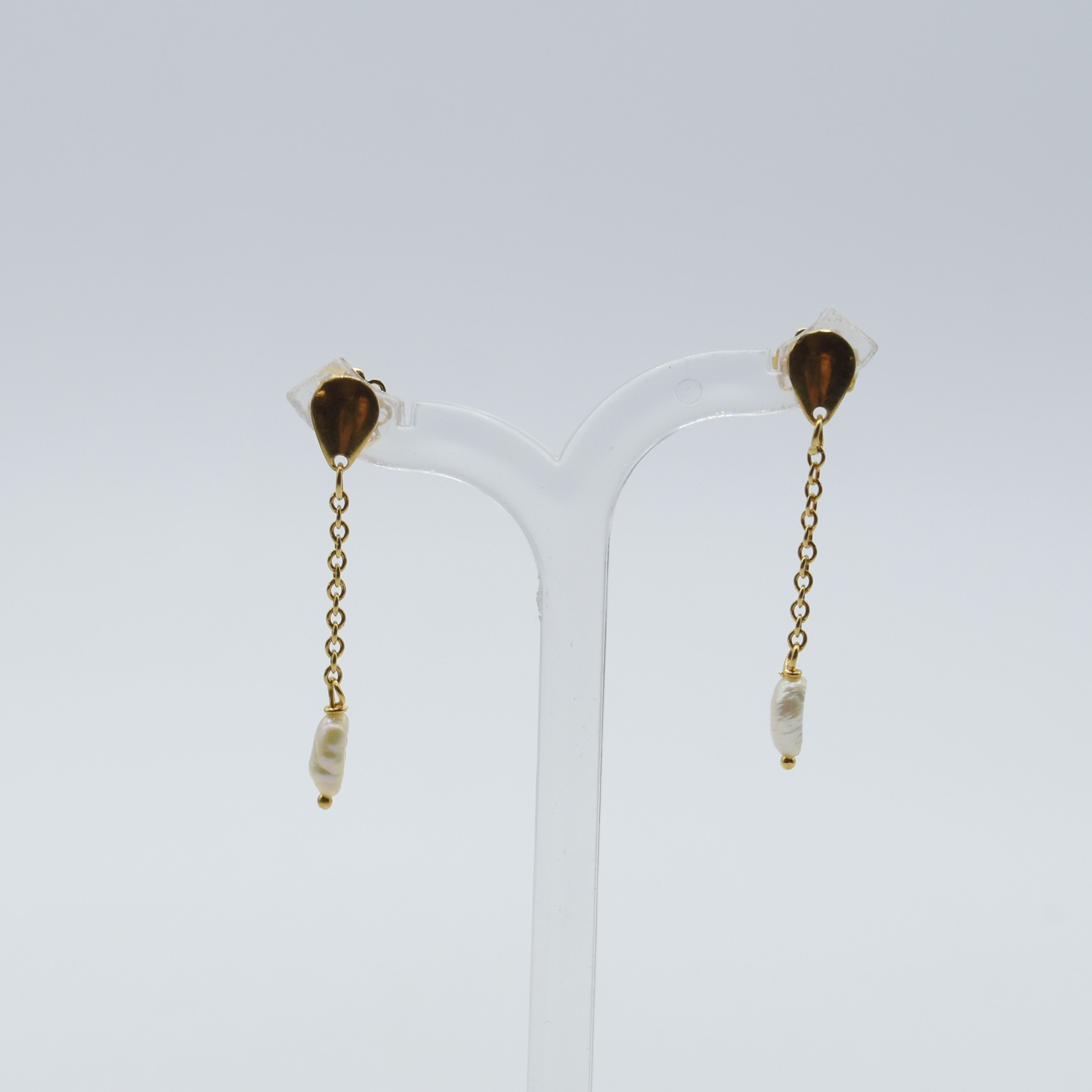 2 oorringen 18 kt geelgoud (parels) - 1.8 g bruto