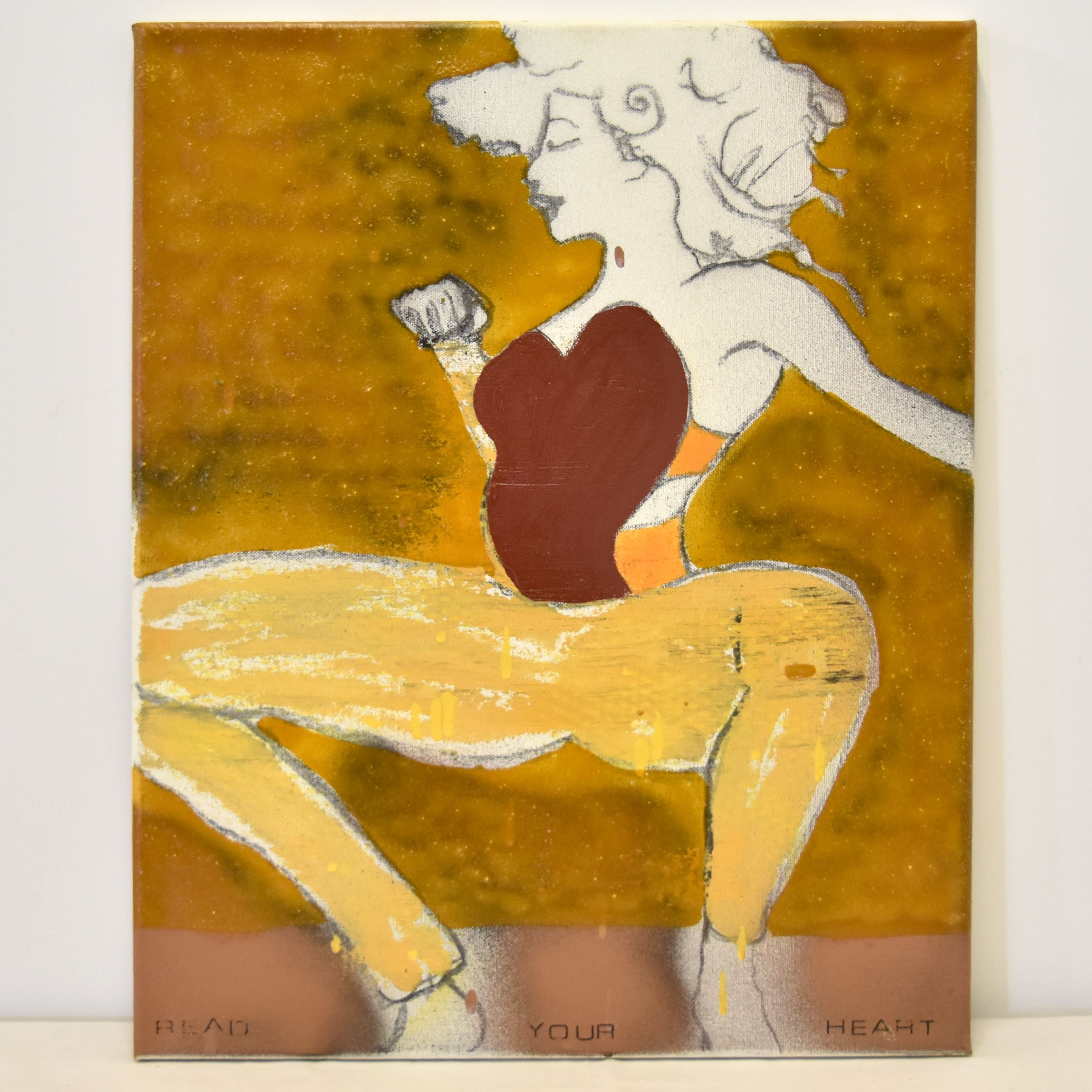 Acryl op doek getekend MUFUKI: "Read your heart" (40 x 50 cm)