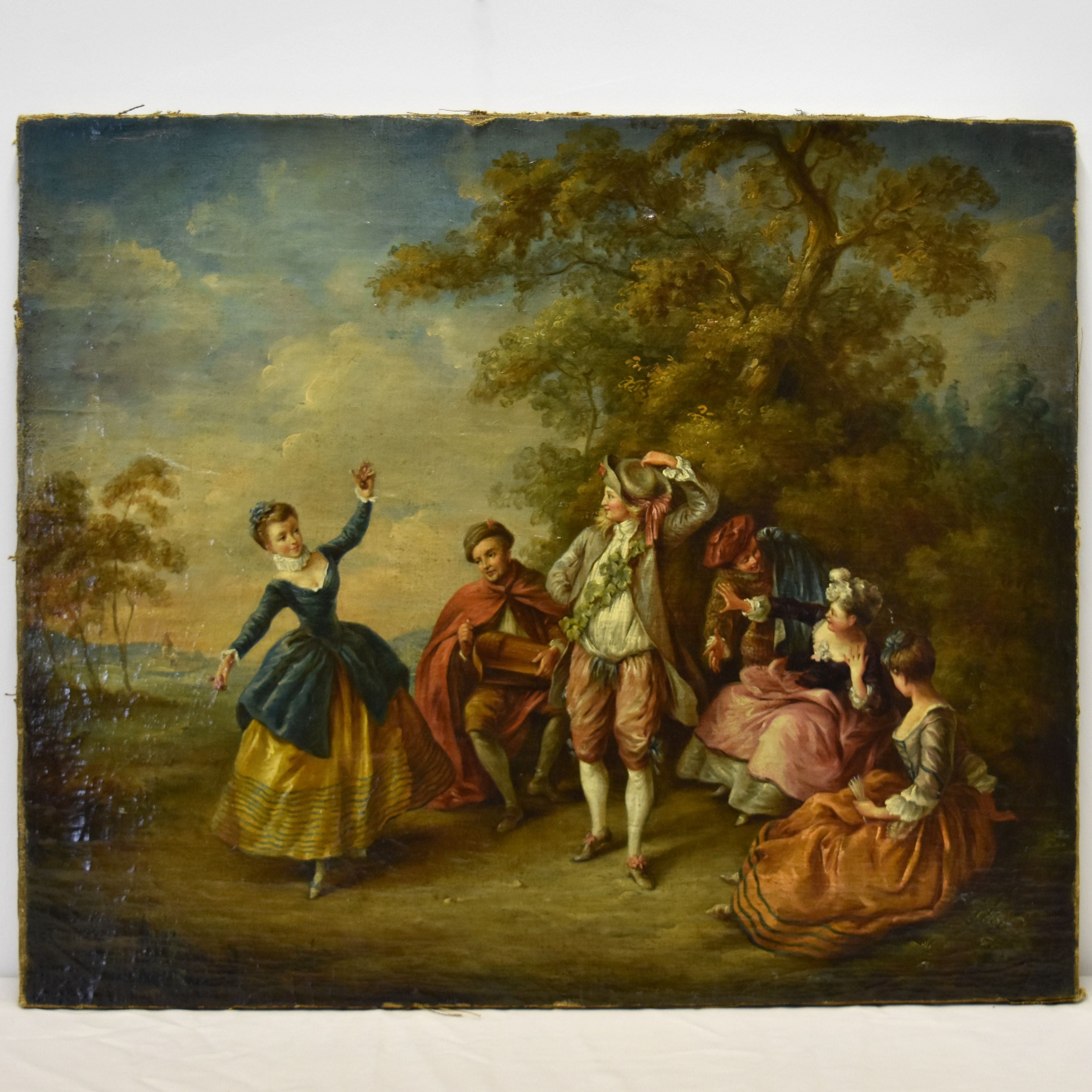 Olie op gemaroufleerd doek: Familiescène (doek beschadigd) (64.5 x 54 cm)