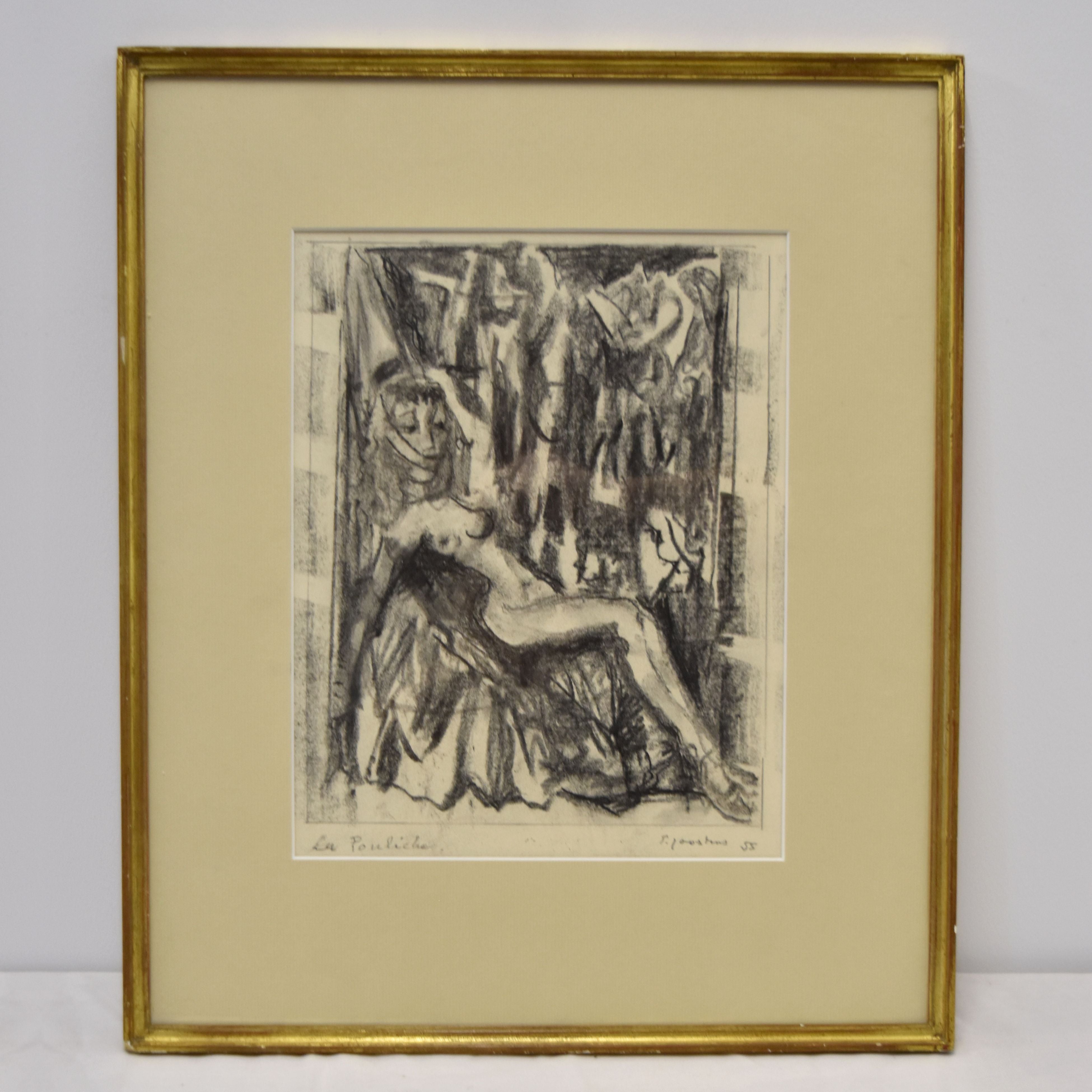 Houtskooltekening op papier getekend Paul JOOSTENS: "La pouliche" (21.5 x 27.5 cm)