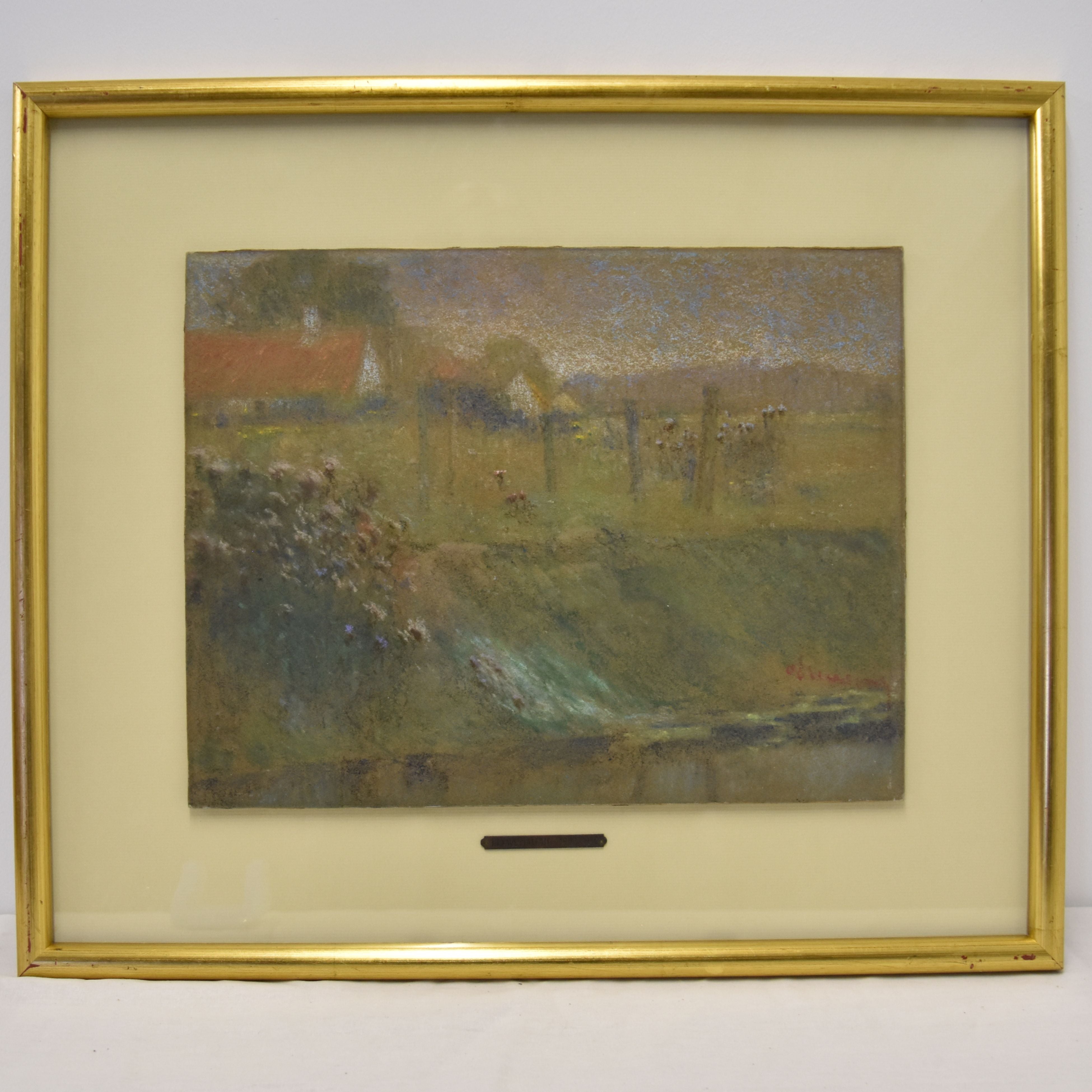 Pastel op marouflépapier op paneel getekend Octave MALFAIT: Vlaams landschap (34 x 26.5 cm)