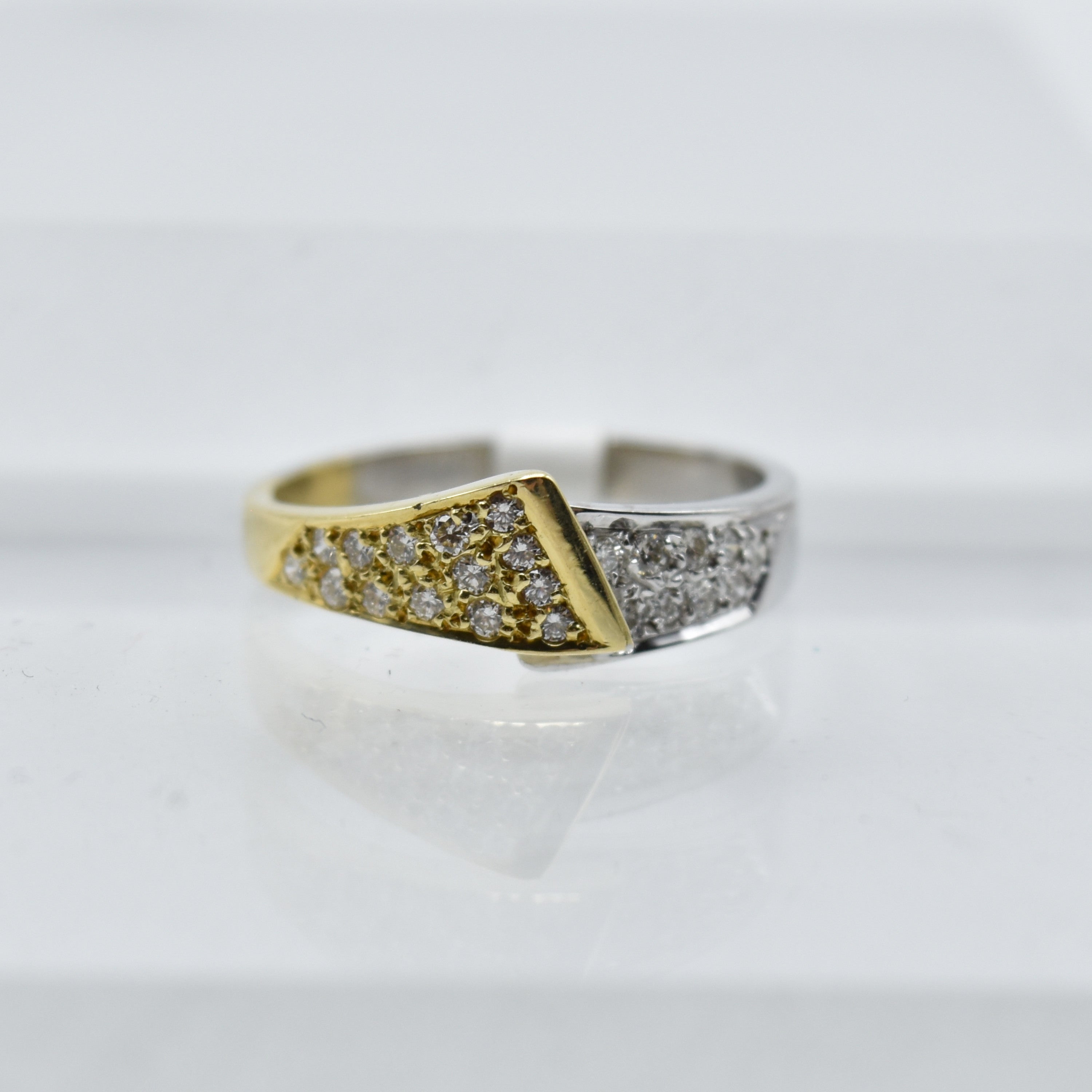 Ring in 18 kt geel- en witgoud bezet met 23 briljanten +/- 0.35 kt - 3.4 g (Maat: 54)