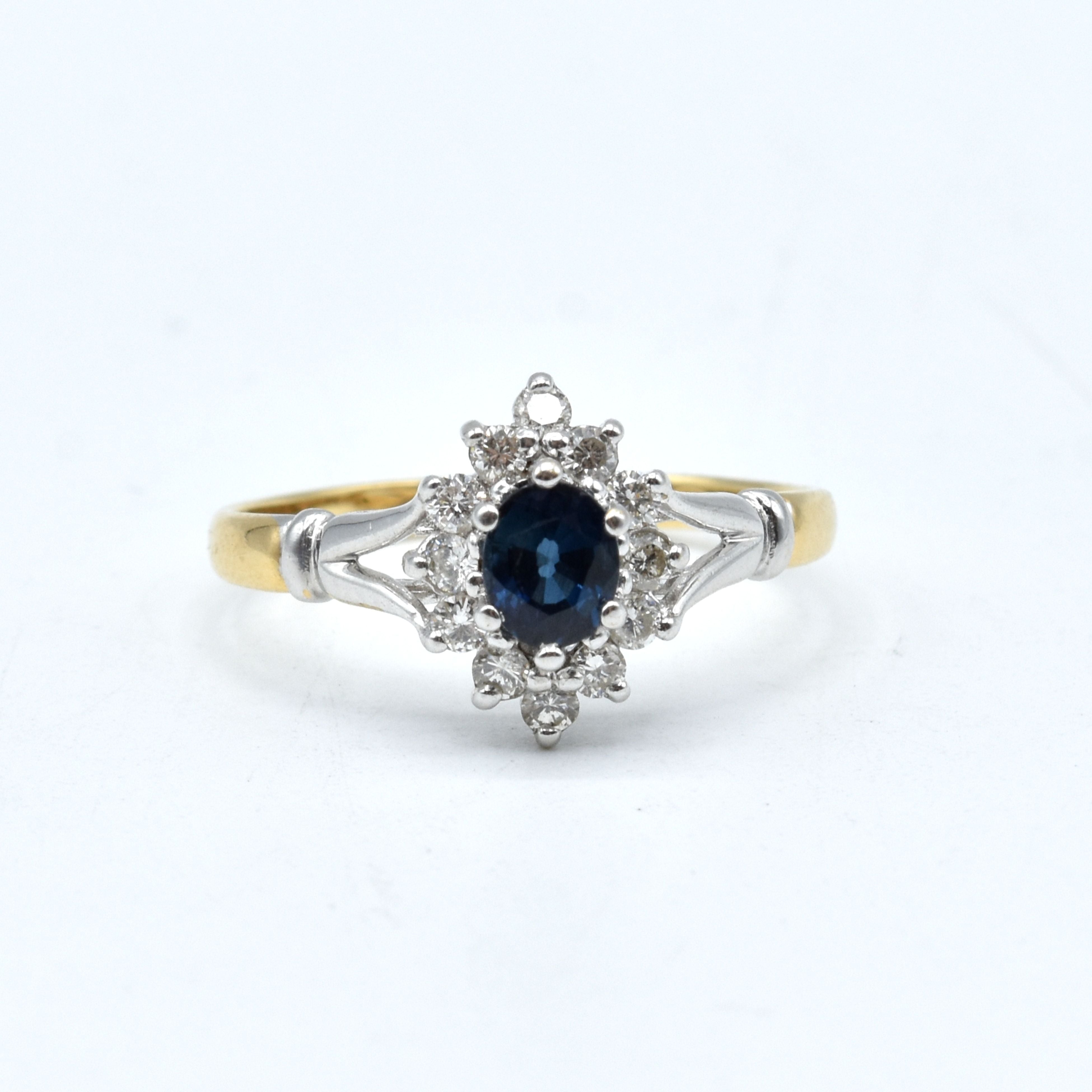 Ring in 18 kt geel- en witgoud bezet met 12 briljanten +/- 0.24 kt (kleursteen, steen beschadigd) - 2.5 g (Maat: 56)
