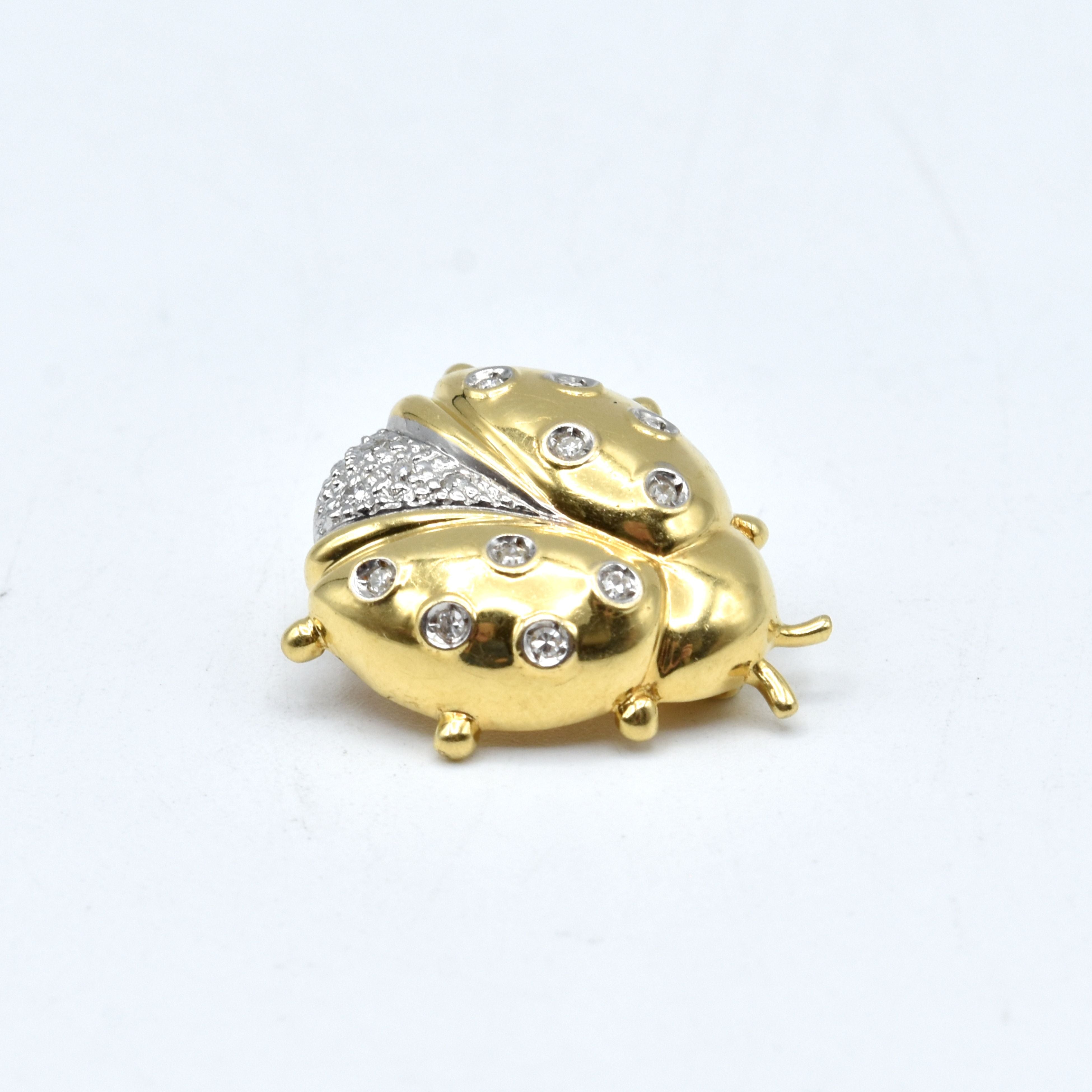 Borstspeld (lieveheersbeestje) in 18 kt geel- en witgoud bezet met 14 diamanten 8/8 slijpsel +/- 0.12 kt - 3.3 g