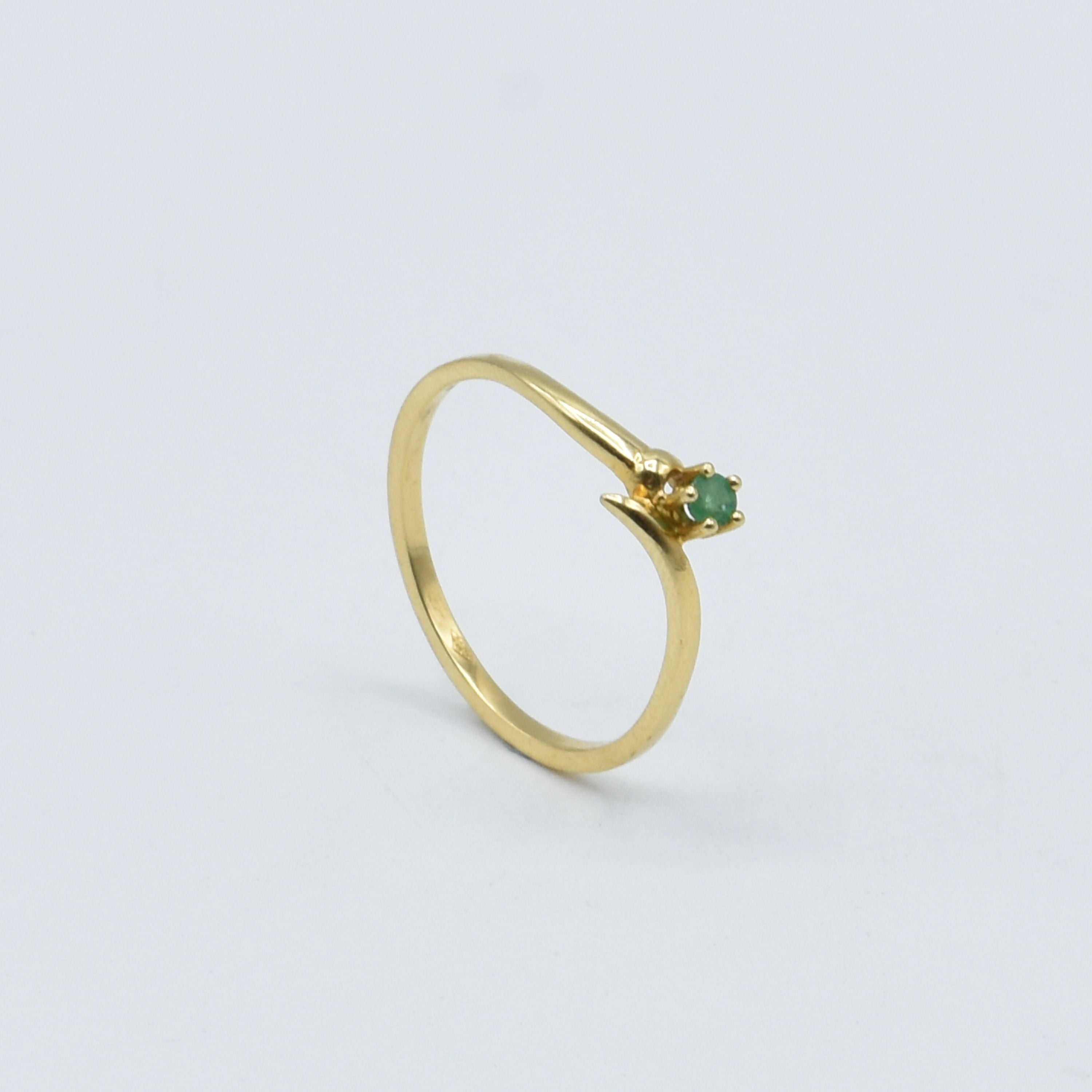 Ring 18 kt bezet met 1 smaragd - 1.4 g (Maat: 54)