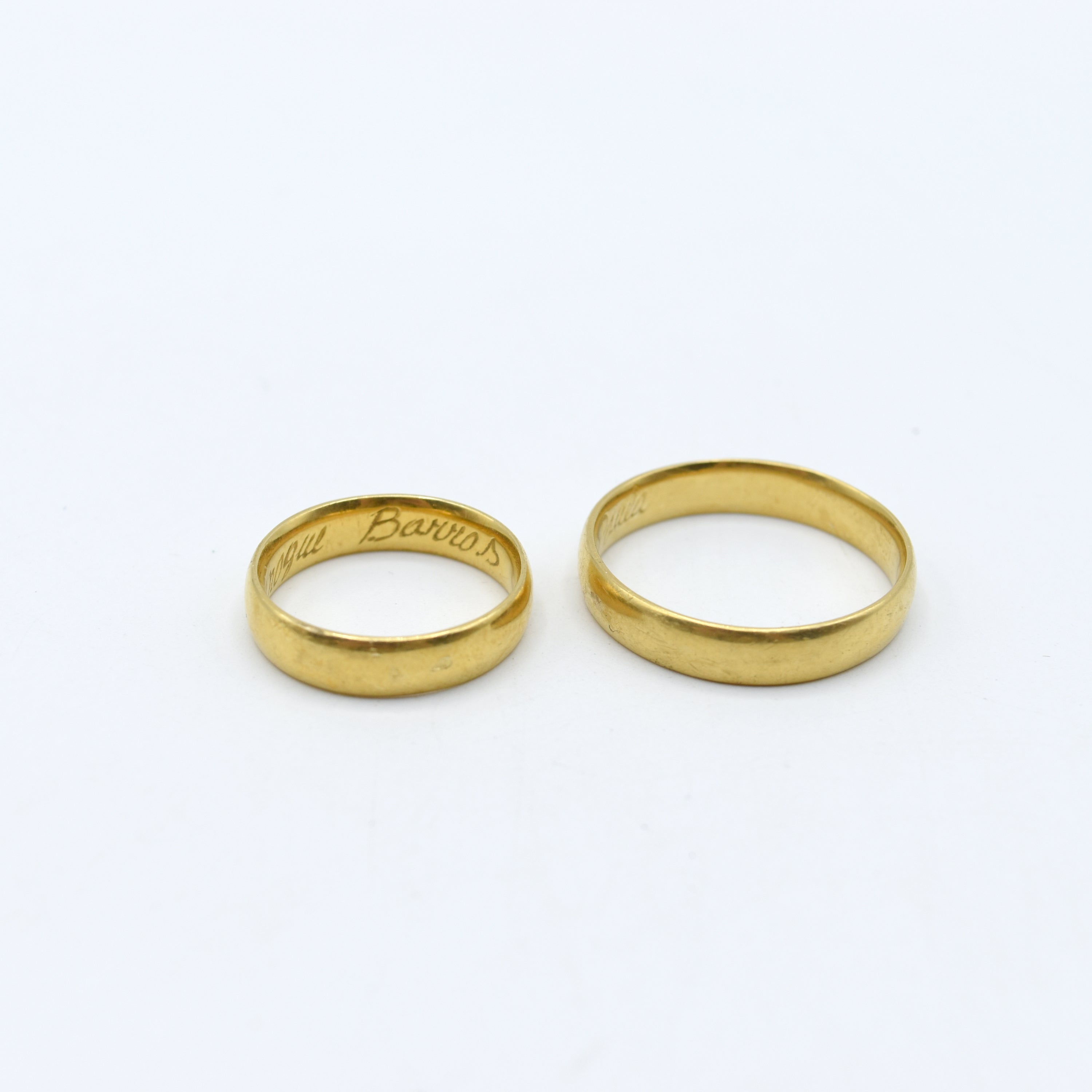 2 trouwringen in 18 kt geelgoud (gepersonaliseerd, beschadigd, gedeukt) - 11.7 g (Maten: 69.5 & 56)