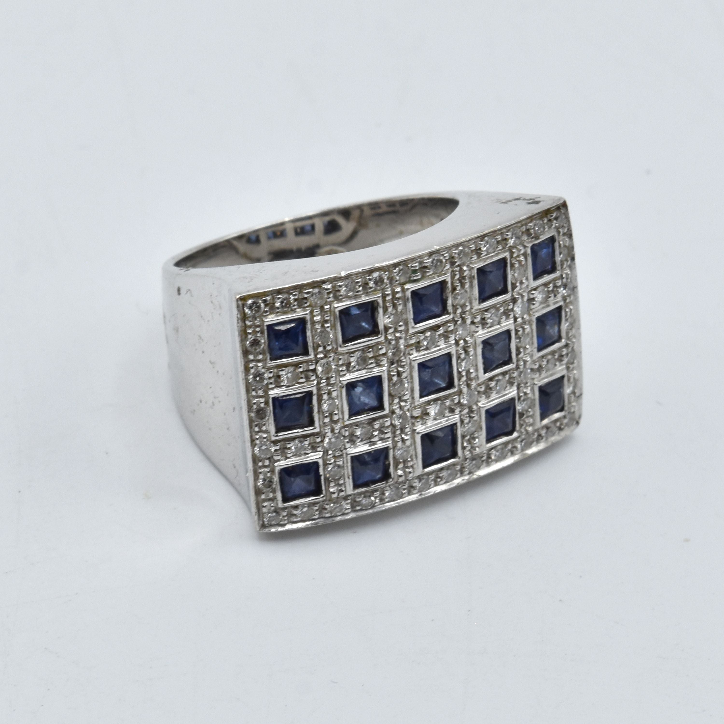 Ring in 18 kt witgoud bezet met 72 briljanten +/- 0.72 kt (kleurstenen) - 18.1 g bruto (Maat: 56)