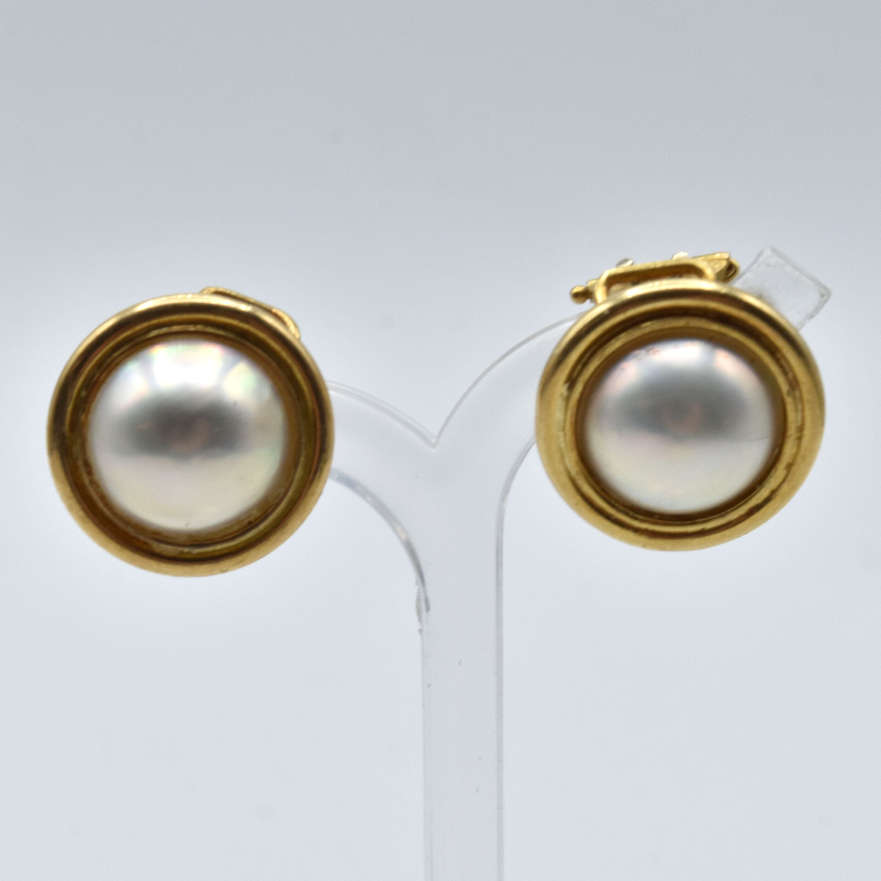 2 oorringen in 18 kt geelgoud bezet met 2 mabeparels (beschadigd) - 11.9 g bruto
