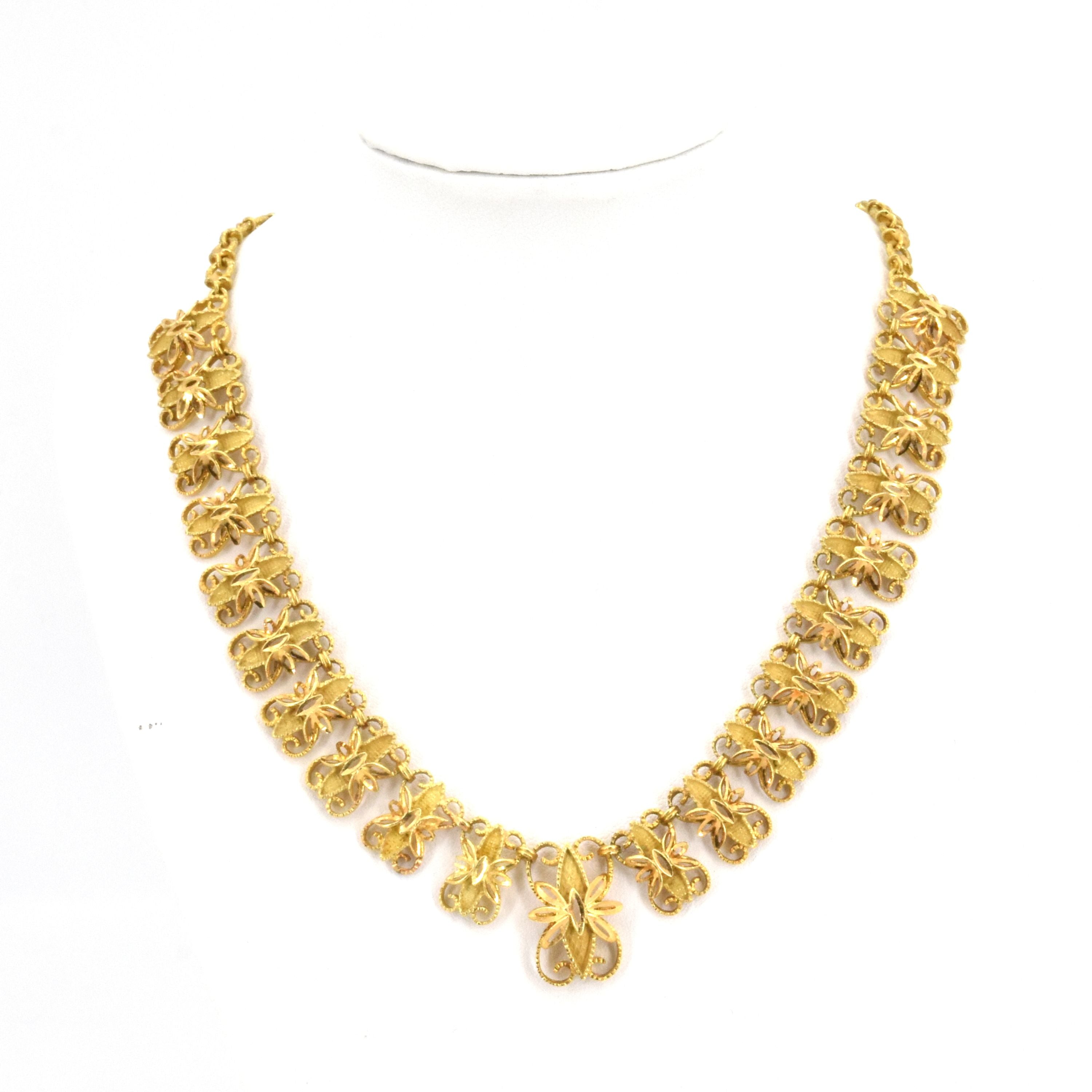 Halsketting (kabel) en 2 oorringen in 18 kt geel- en witgoud bezet met 18 briljanten +/- 1.30 kt - 30.5 g (41 cm)