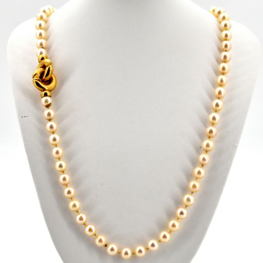 Parelhalssnoer (+/- 6.5 mm) met sluiting in 18 kt geelgoud (51 cm)