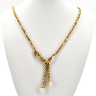 Halsketting in 18 kt geelgoud bezet met 2 parels (parels beschadigd,gedeukt, gebroken) - 14.9 g bruto (50 cm)