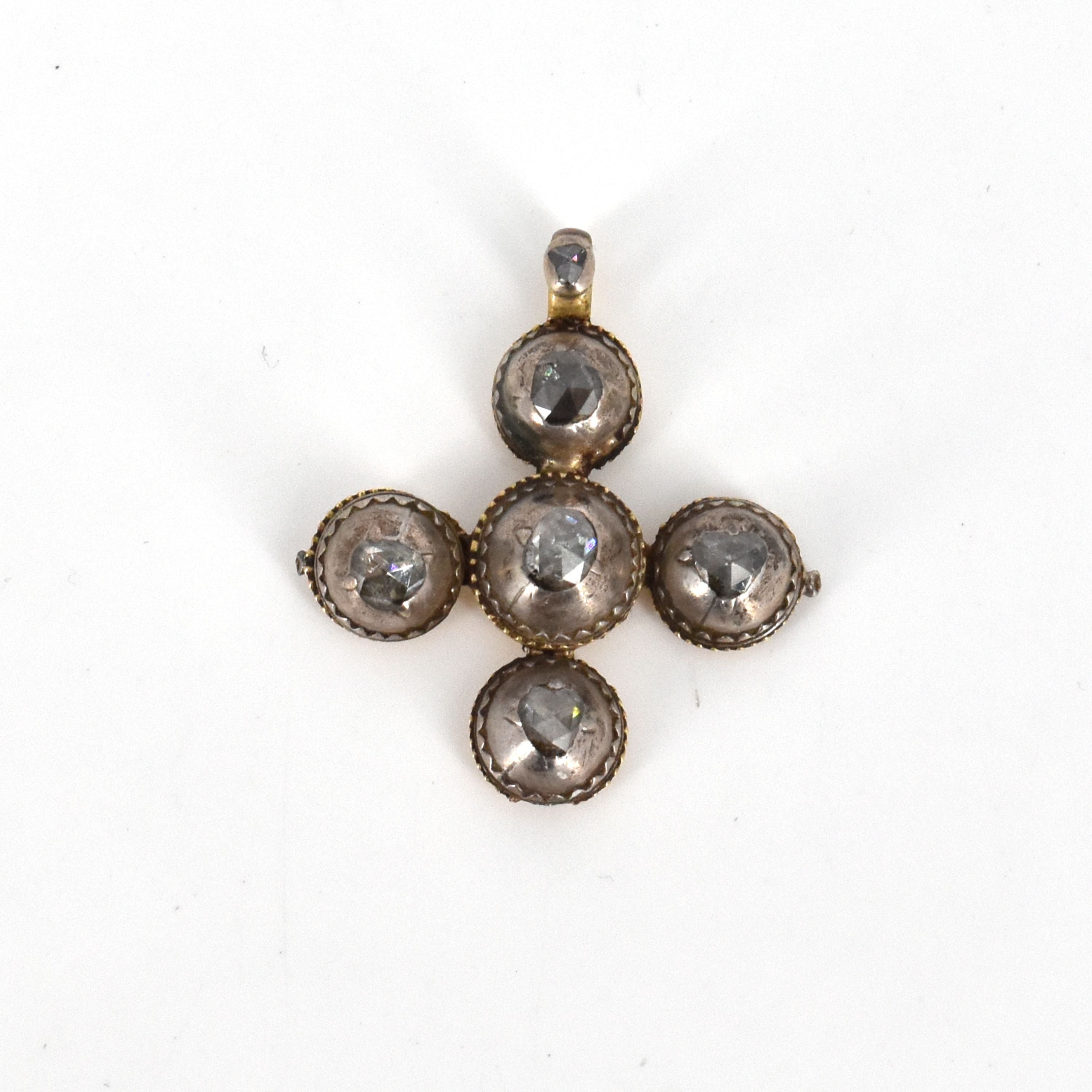 Hanger in zilver met gedeelte in 18 kt geelgoud bezet met diamantroosjes (beschadigd, gedeelte ontbreekt, gebroken) - 5.2 g bruto