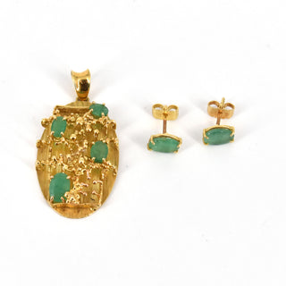 Hanger en 2 oorringen in 18 kt geelgoud bezet met smaragden (gedeukt) - 10.7 g bruto