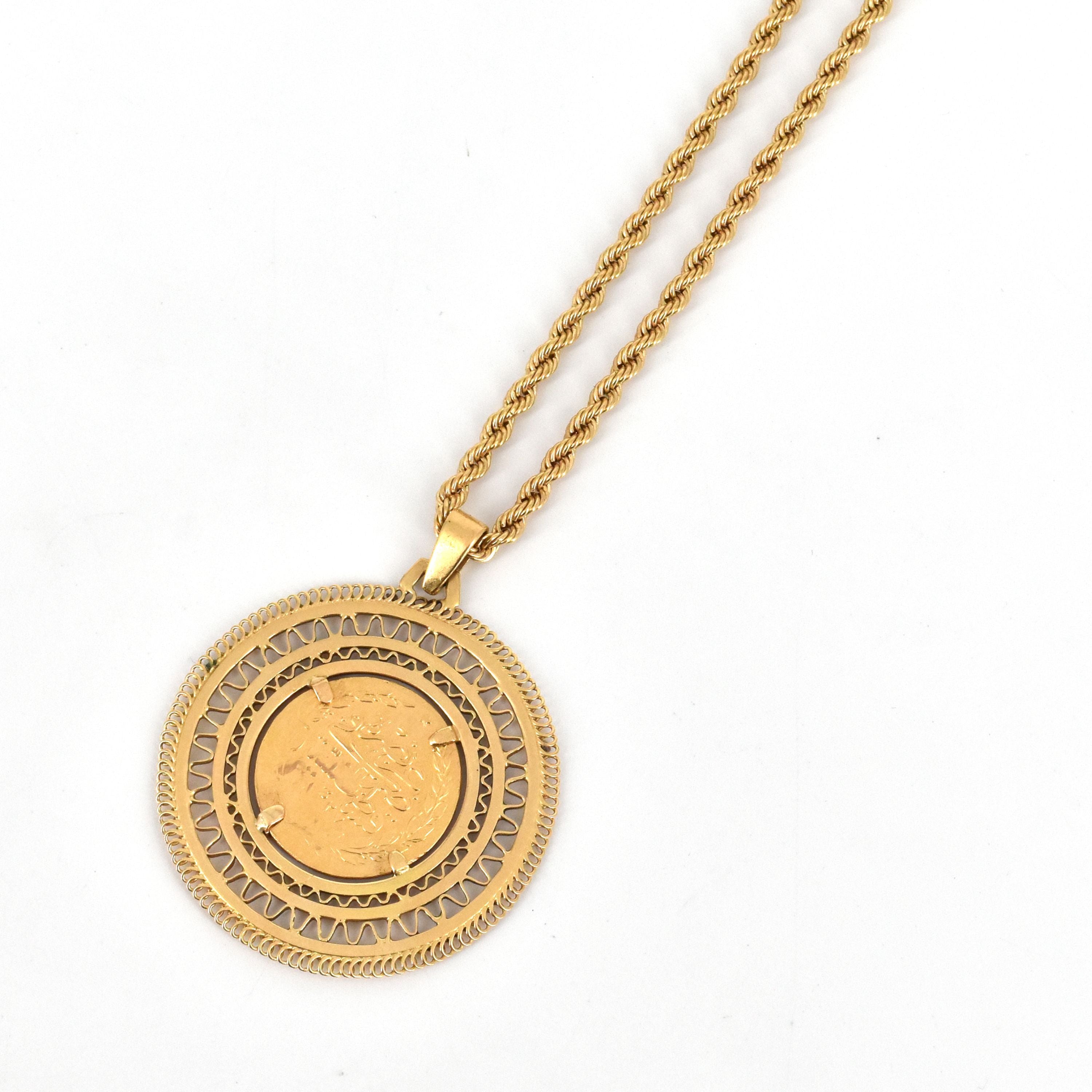 Halsketting en hanger in 18 kt geelgoud bezet met 1 muntstuk (beschadigd) - 23.3 gram (50.5 cm)