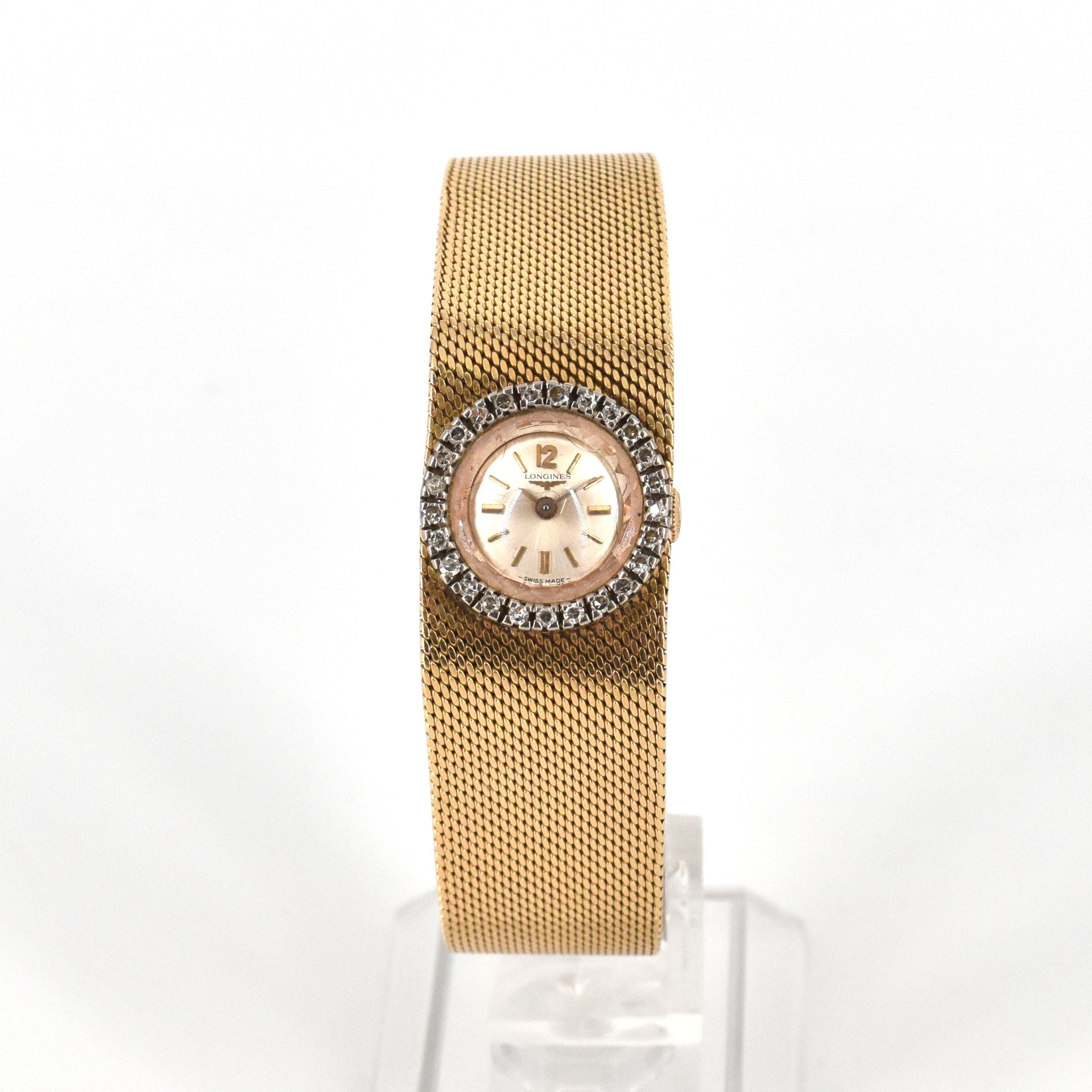 Damespolshorloge in 18 kt geel- en witgoud LONGINES mechanisch bezet met 25 diamanten maat 8/8 +/- 0.50 kt - 52.2 g bruto (17 cm)